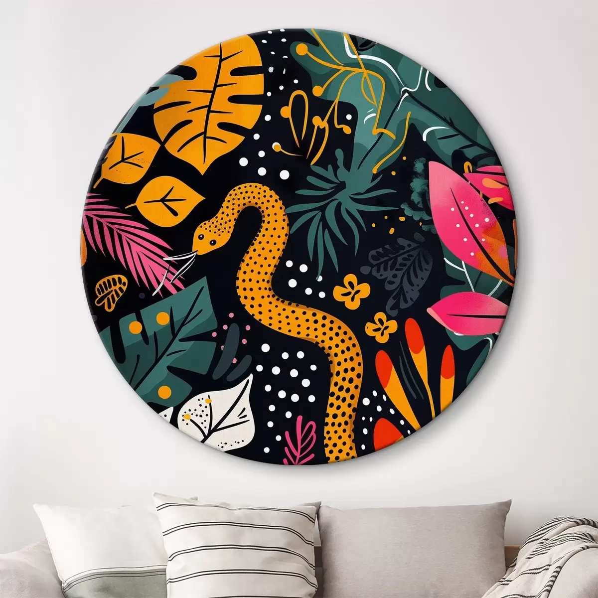 Ronde schilderijen Tropische abstractie met slang Nr r39208