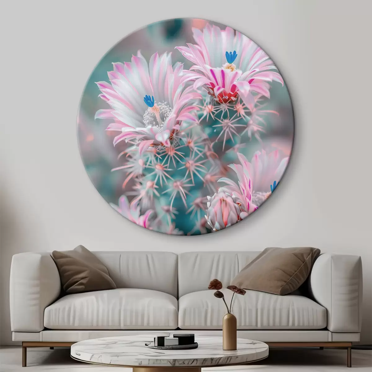 Ronde schilderijen Roze cactusbloemen Nr r39212