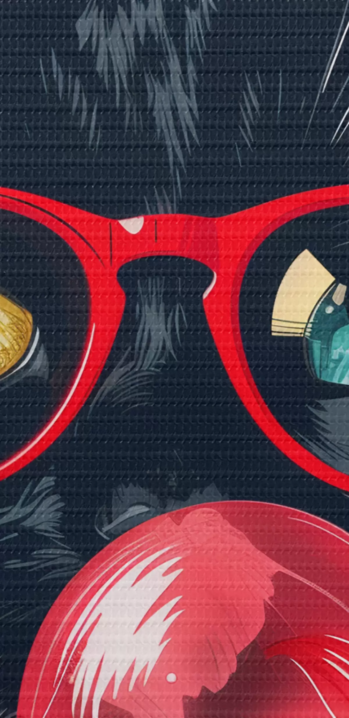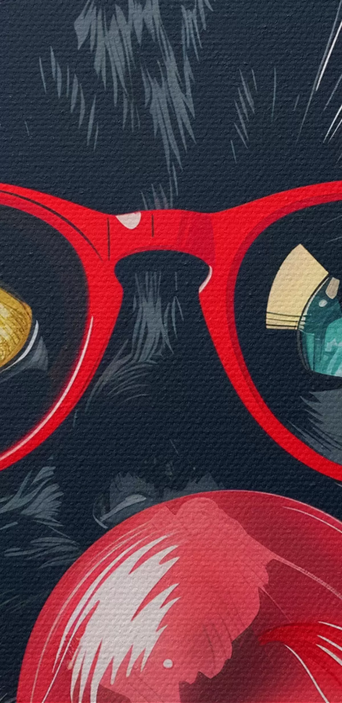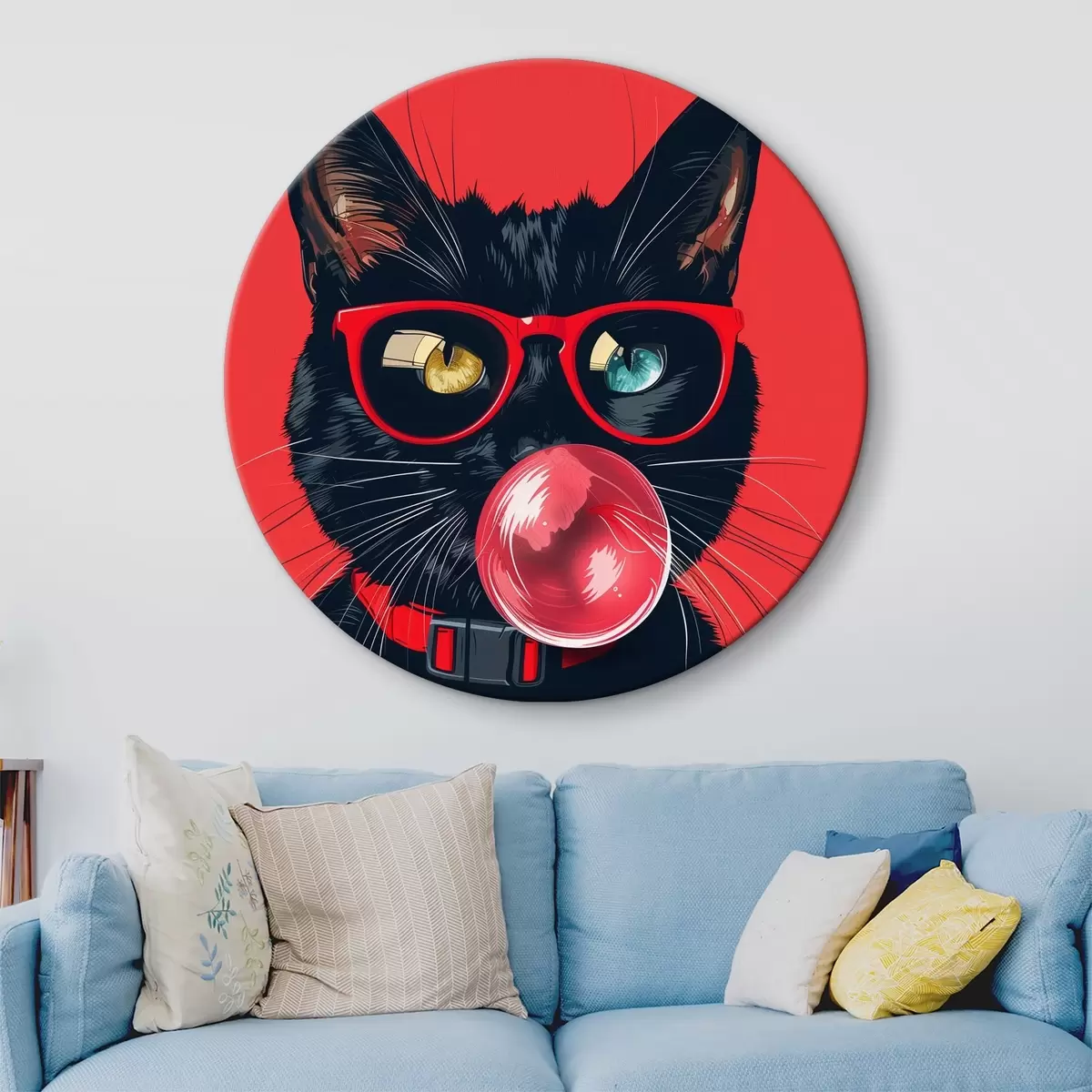 Ronde schilderijen Zwarte kat met bril Nr r39224