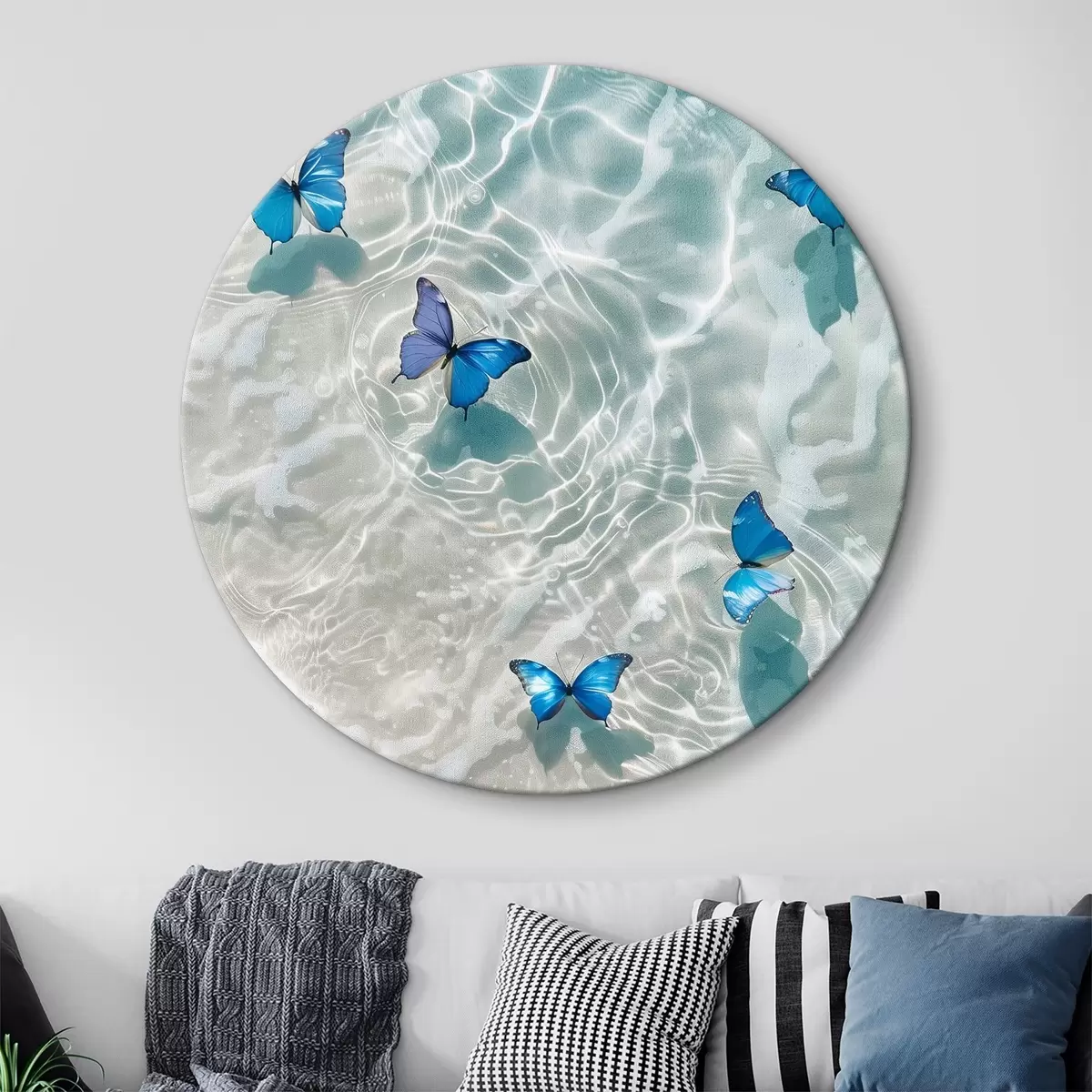 Ronde schilderijen Blauwe vlinders op een zeegolf Nr r39228