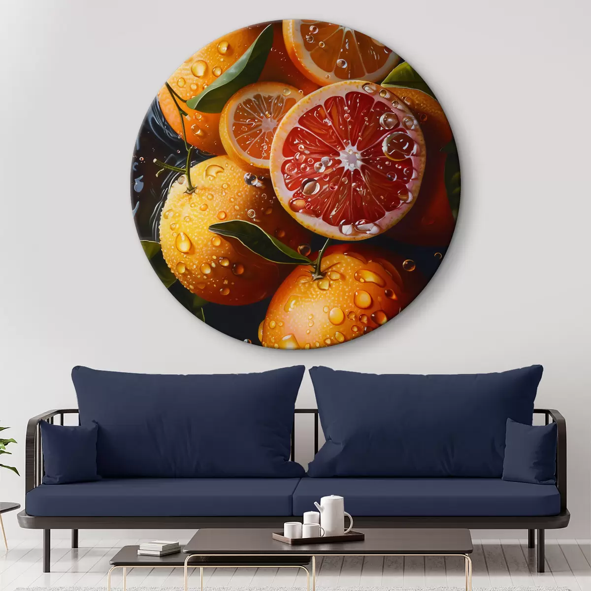 Ronde schilderijen Sinaasappelen en grapefruit op een donkere achtergrond Nr r39238