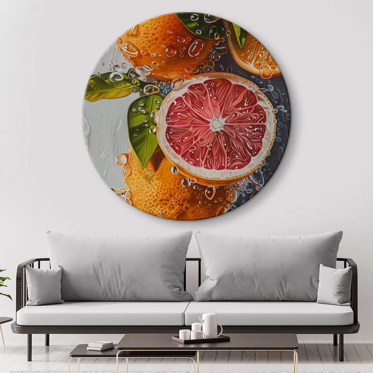 Ronde schilderijen Sinaasappelen en waterspatten Nr r39240