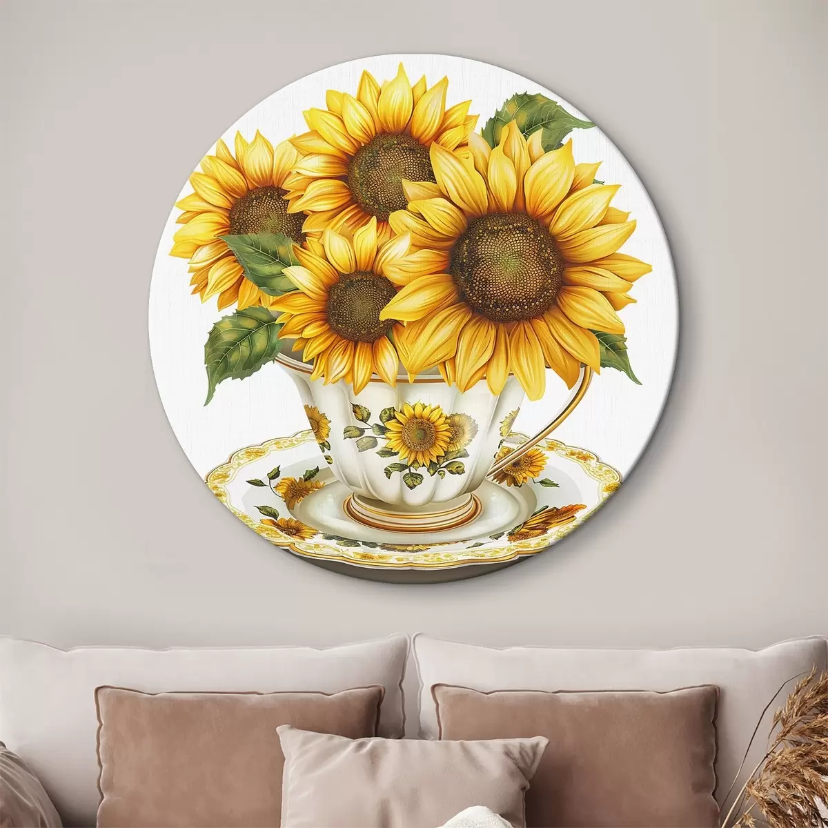 Ronde schilderijen Zonnebloemen in een kopje r39241