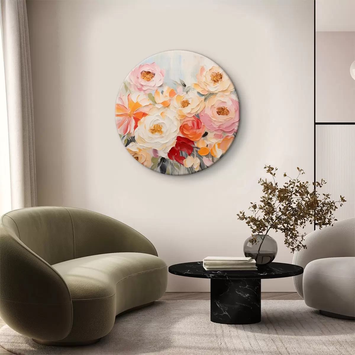 Ronde schilderijen Fijne heldere bloemen in olie r39252