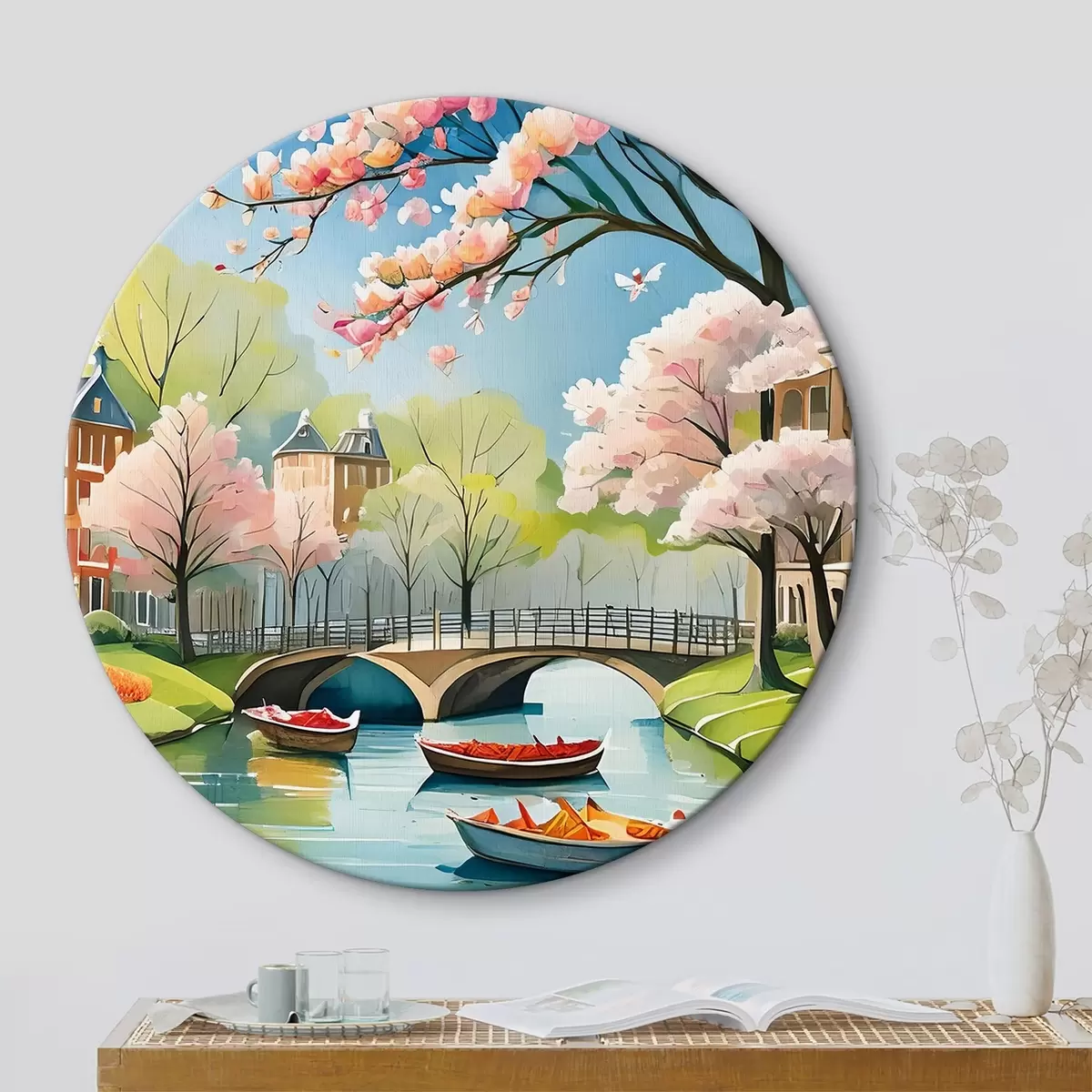Ronde schilderijen bloeiende bomen in Amsterdam in het voorjaar Nr r39301