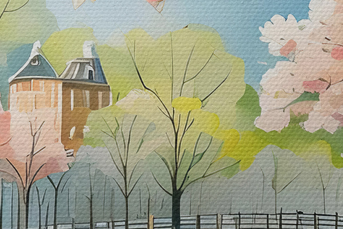 Ronde schilderijen bloeiende bomen in Amsterdam in het voorjaar r39301