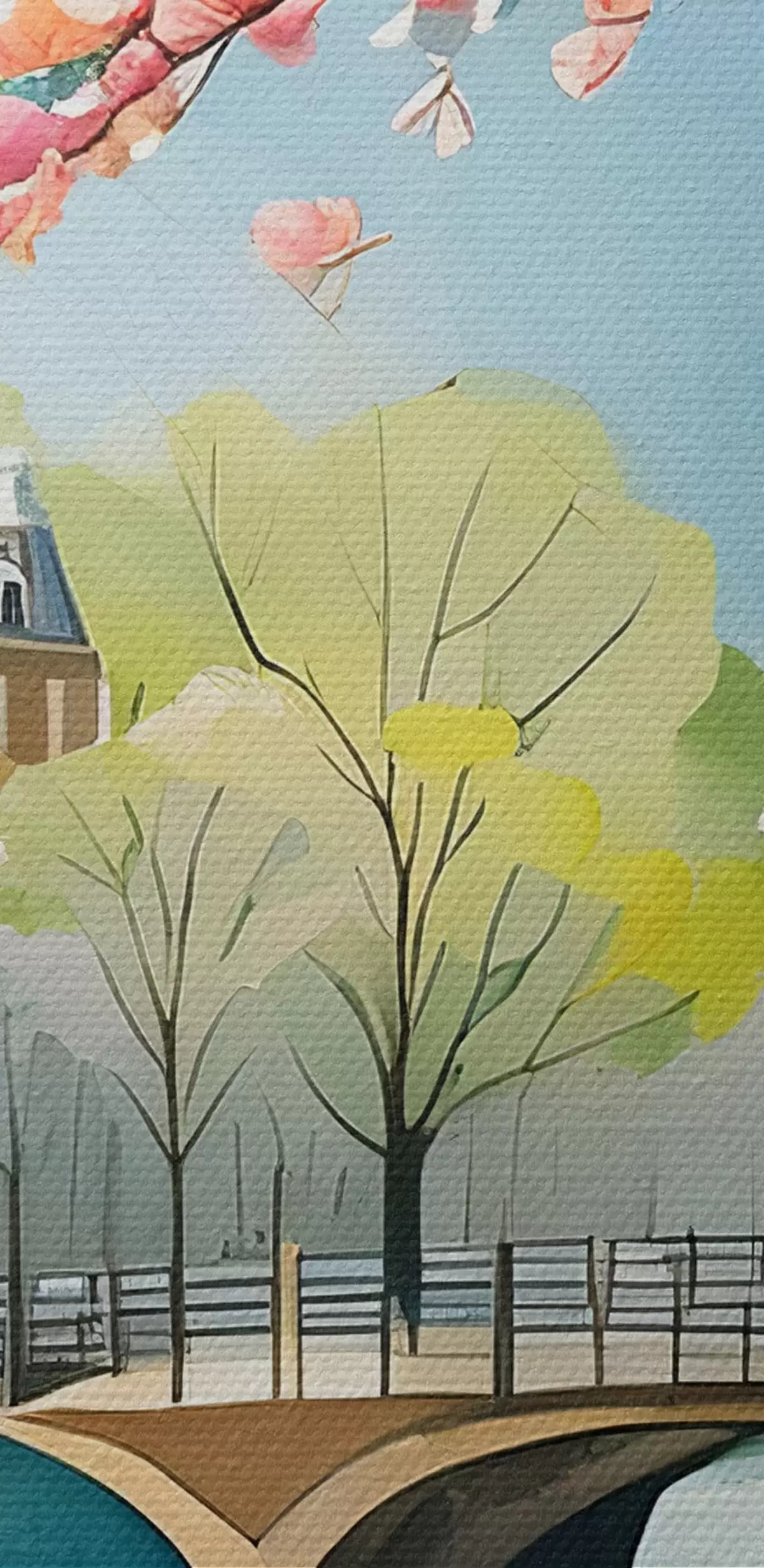 Ronde schilderijen bloeiende bomen in Amsterdam in het voorjaar Nr r39301