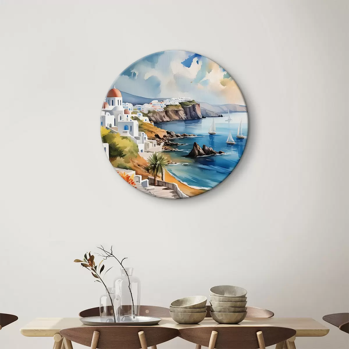 Ronde schilderijen Uitzicht op de stad Santorini Nr r39304
