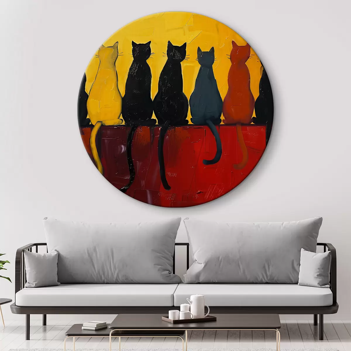 Ronde schilderijen Katten in kleuren Nr r39309