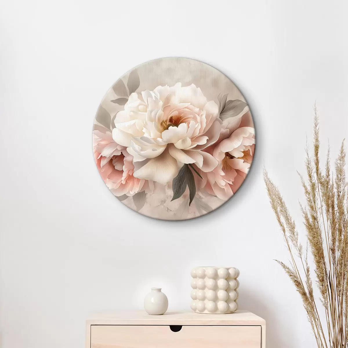 Ronde schilderijen abstract boeket pioenrozen in roze tinten Nr r39324