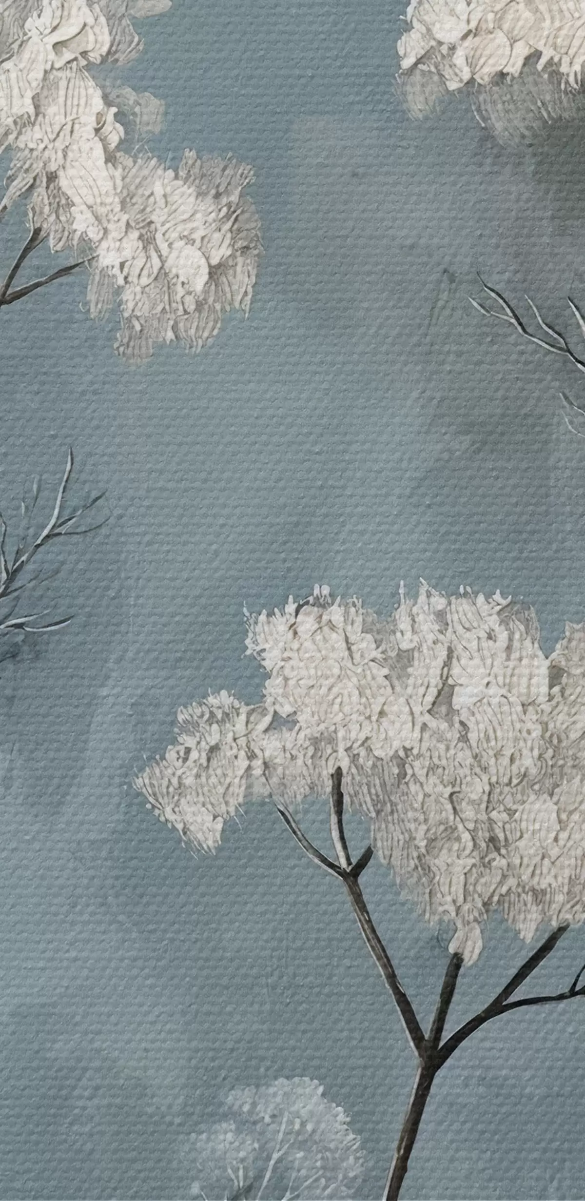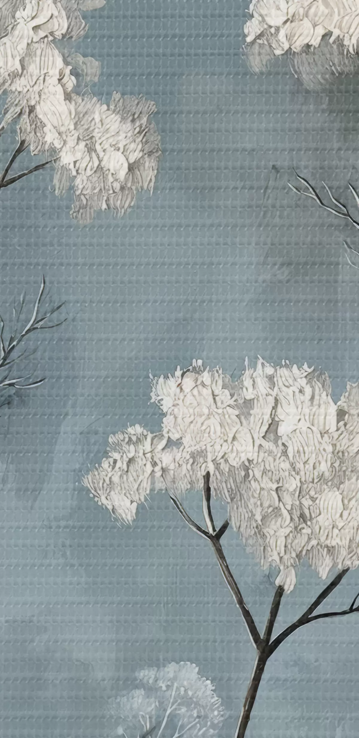 Ronde schilderijen olieverfschilderij van delicate witte bloemen op een blauwe achtergrond Nr r39325