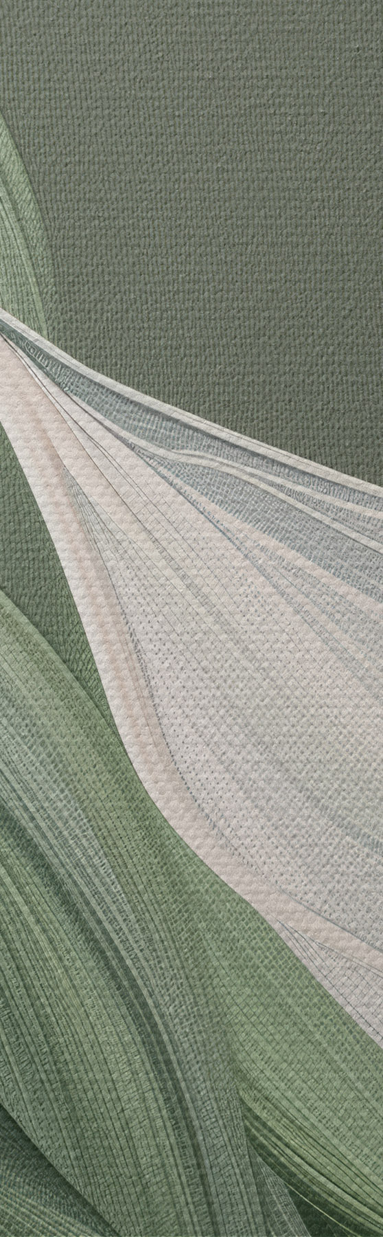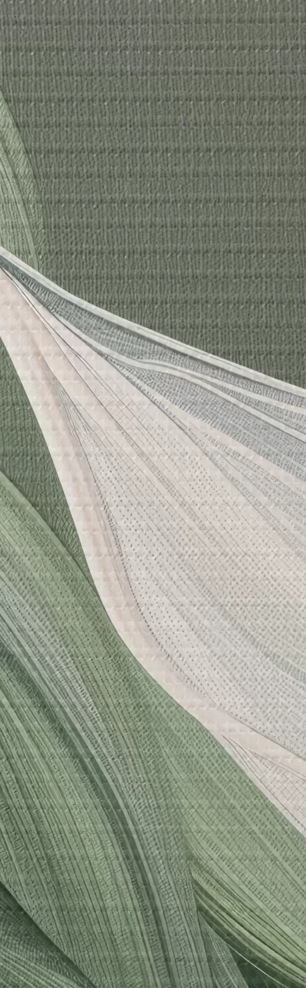 Ronde schilderijen volumineuze abstracte sluier in witte en groene kleuren r39327