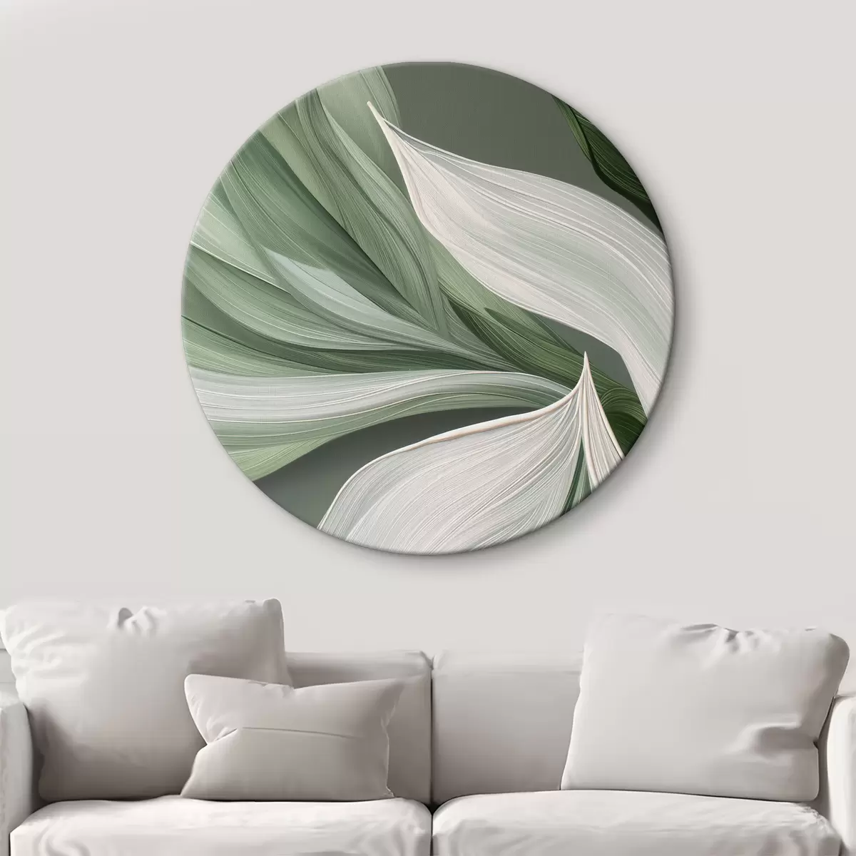 Ronde schilderijen volumineuze abstracte sluier in witte en groene kleuren r39327