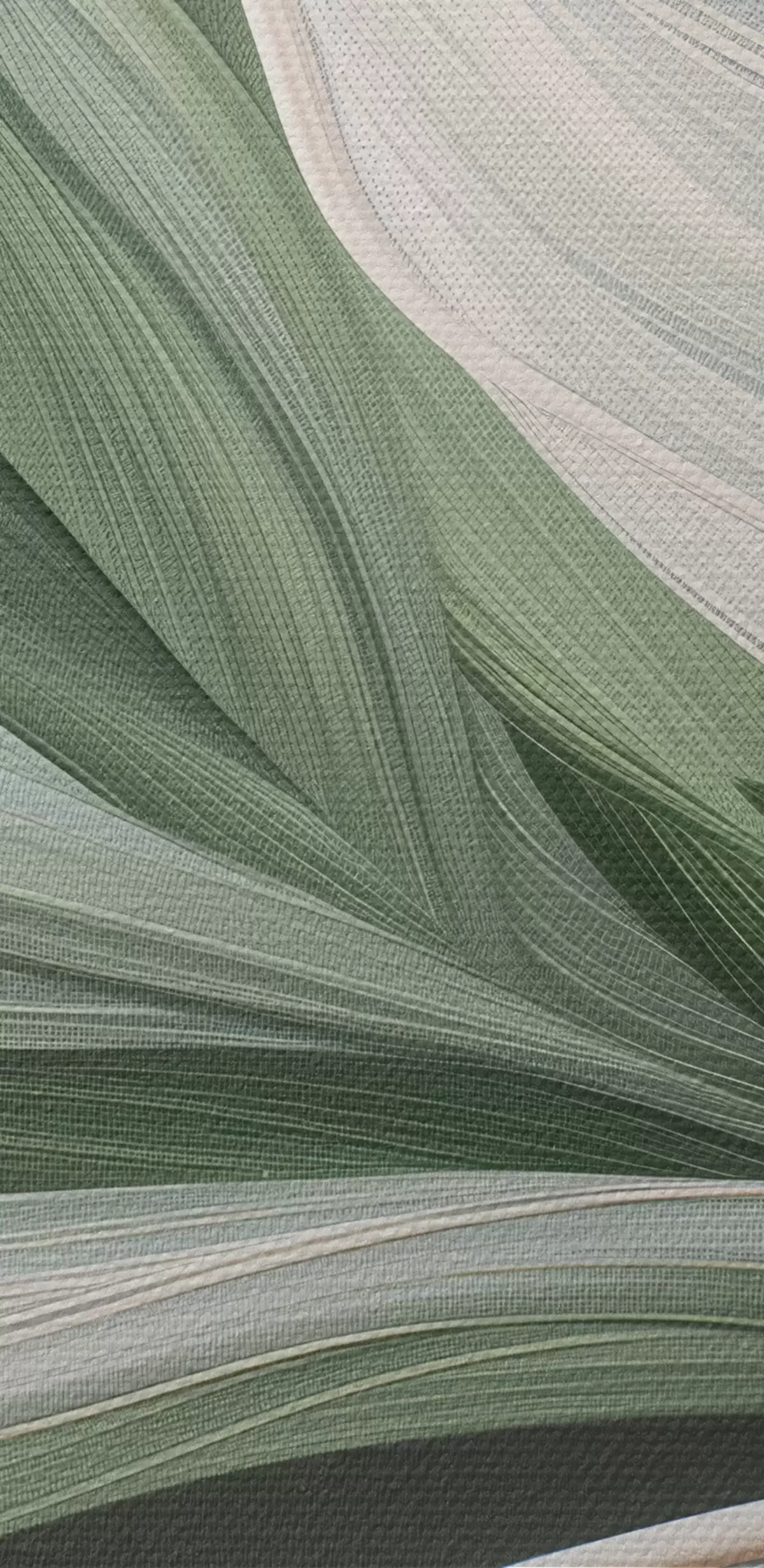Ronde schilderijen volumineuze abstracte sluier in witte en groene kleuren Nr r39327