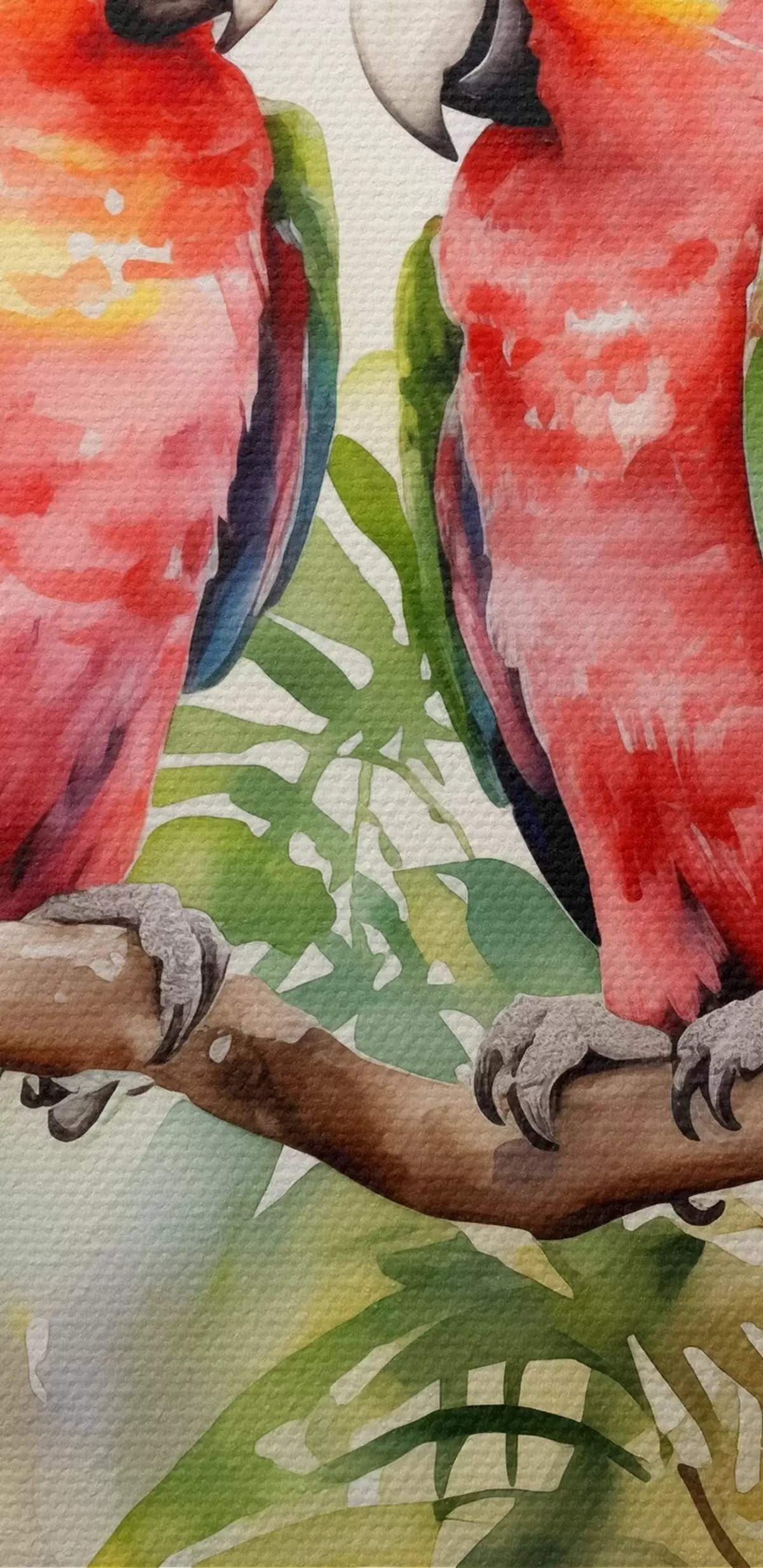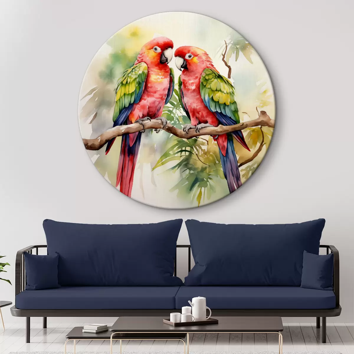 Ronde schilderijen Twee heldere ara-papegaaien die op één takwaterverf zitten Nr r39333