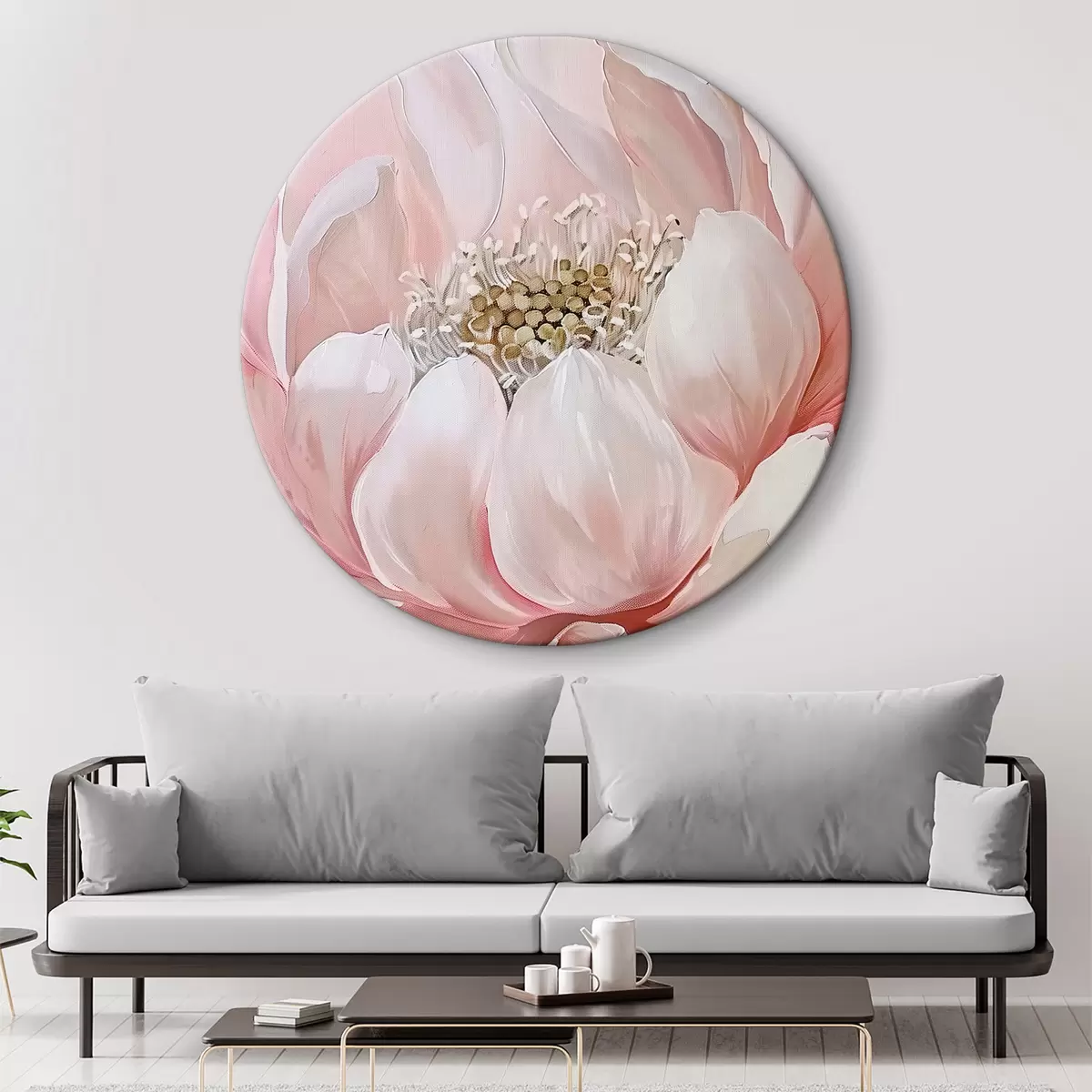 Ronde schilderijen Roze bloem r39350