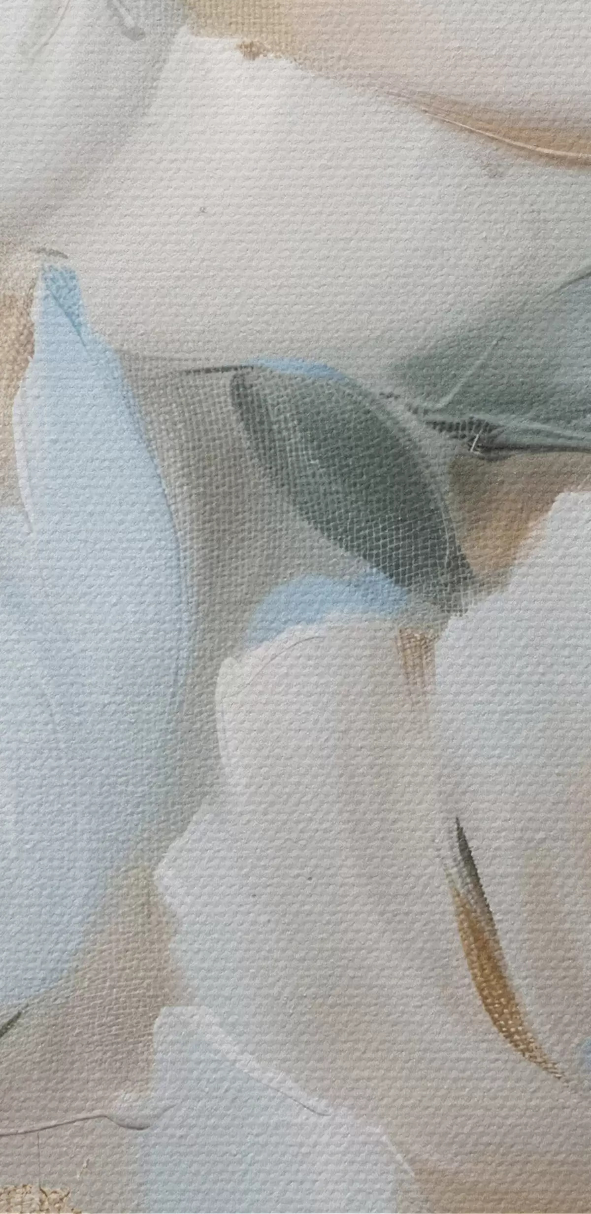 De fijne weving van draden op dit doek lijkt op het oppervlak van professionele schildersdoeken.