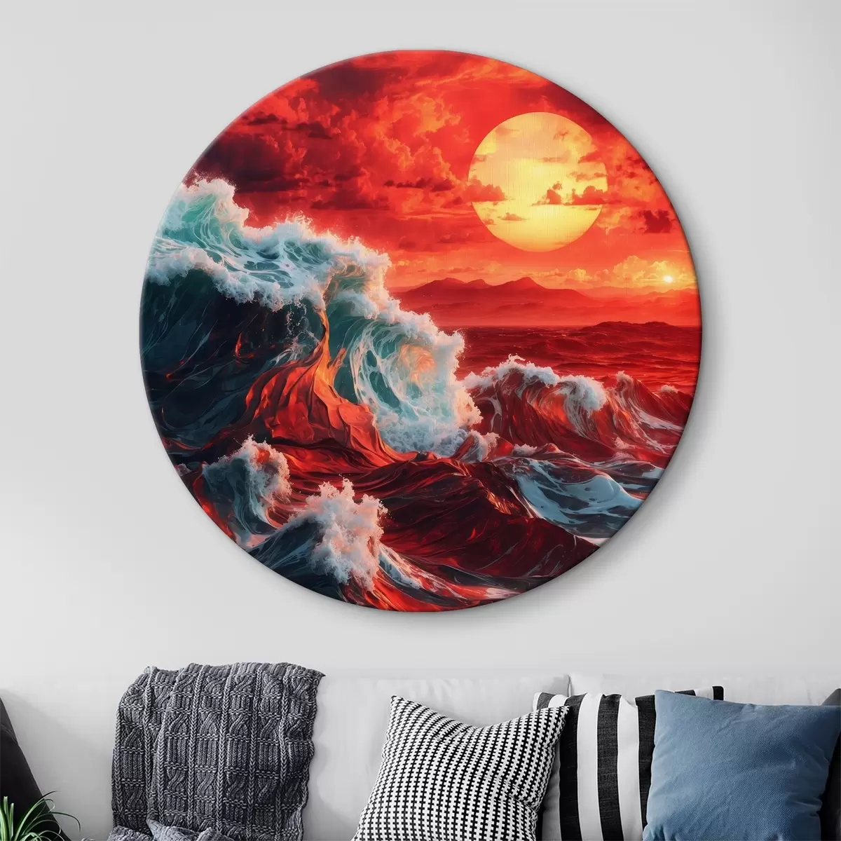 Ronde schilderijen Stormachtige zee bij zonsondergang Nr r39362