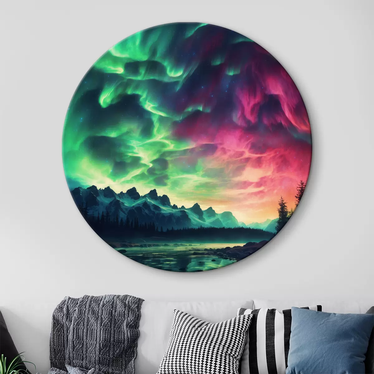 Ronde schilderijen Noorderlicht boven het meer r39364