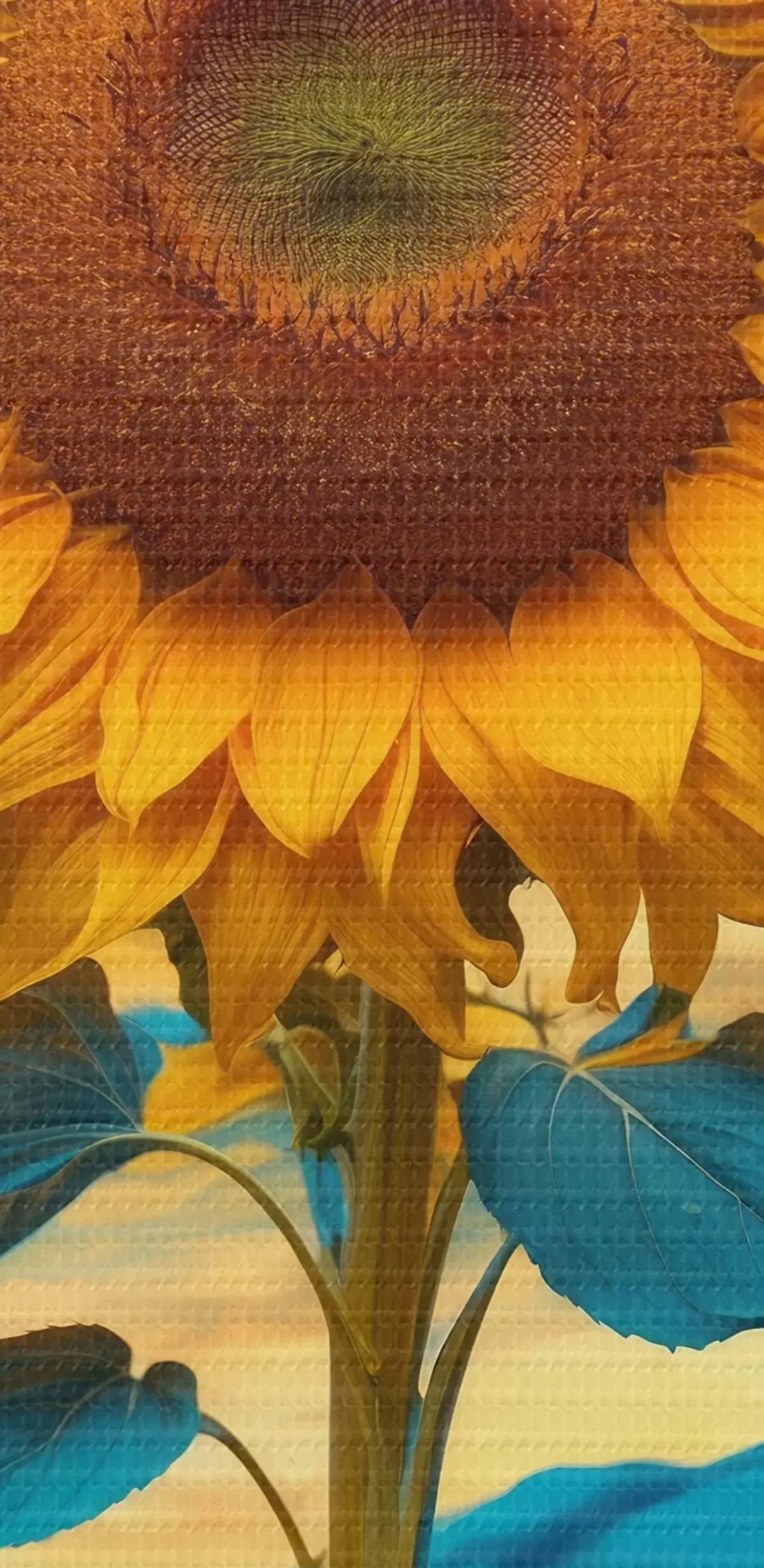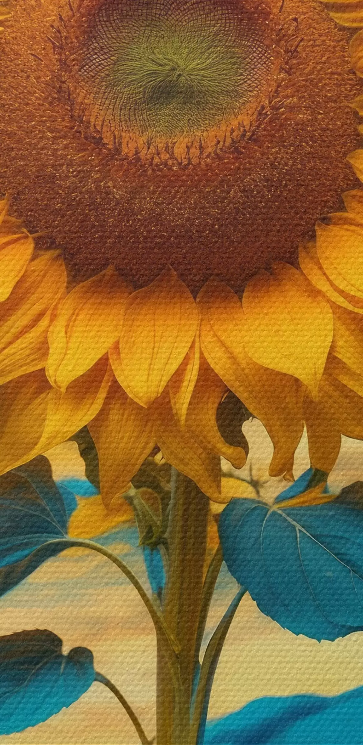 Ronde schilderijen Veld met zonnebloemen over abstracte hemel Nr r39367