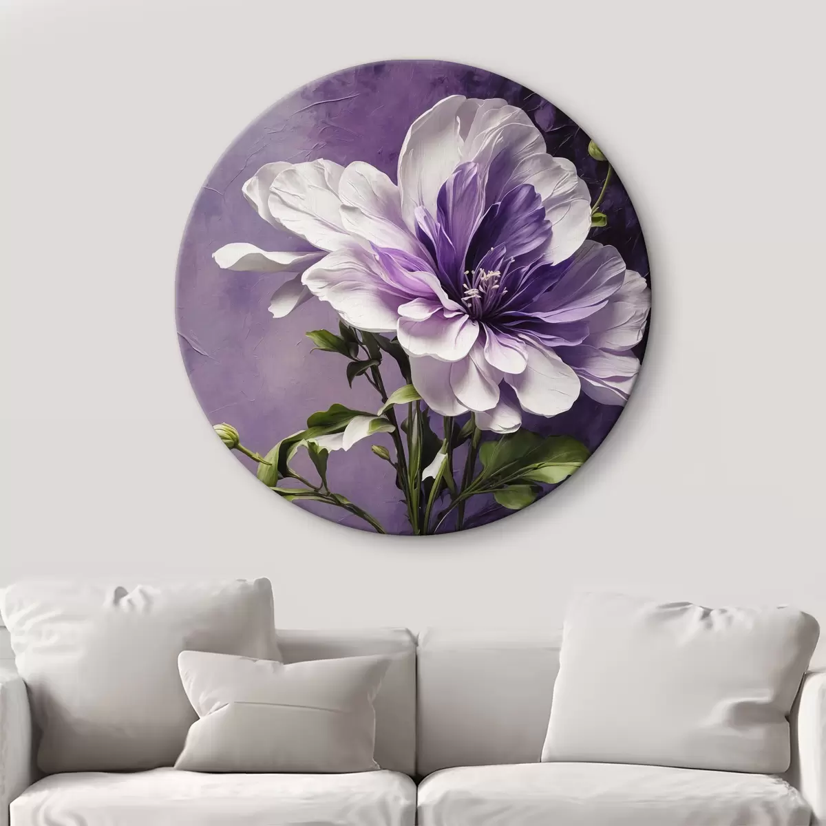 Ronde schilderijen Paarse bloemen op paarse achtergrond Nr r39368
