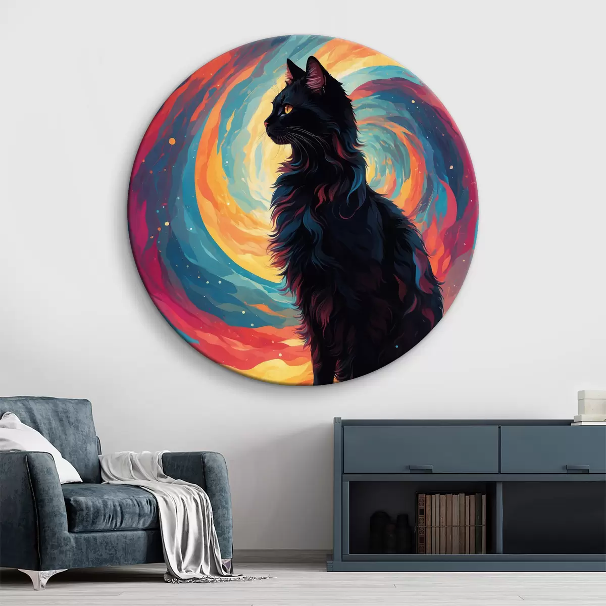 Ronde schilderijen Zwarte kat op ruimteachtergrond Nr r39370