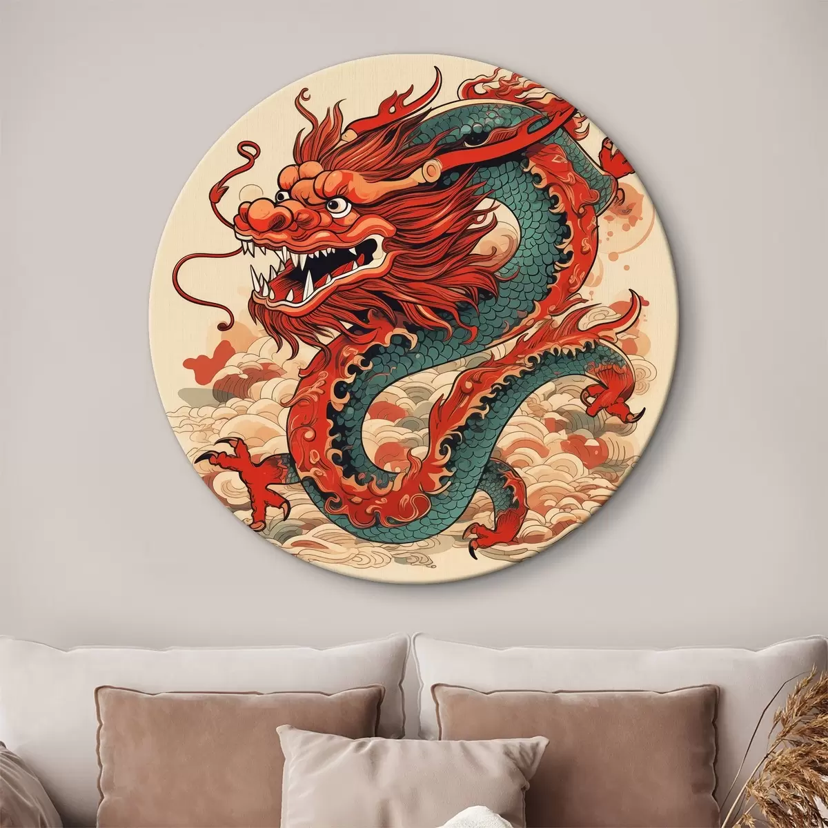 Ronde schilderijen Rode draak in Chinese stijl, oosters r39439
