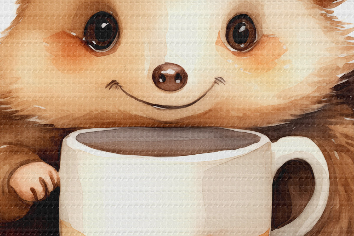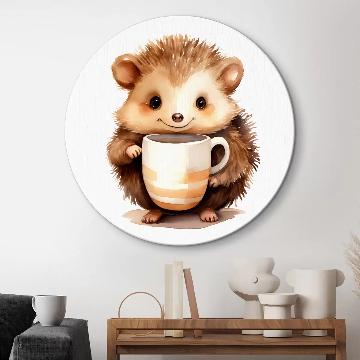 Ronde schilderijen Egel met een witte kop in zijn poten aquarel kinderillustratie Nr r39440