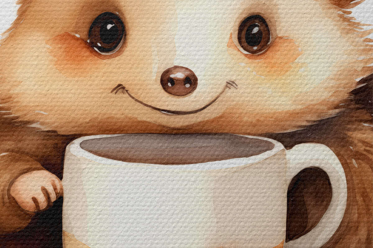 Ronde schilderijen Egel met een witte kop in zijn poten aquarel kinderillustratie r39440