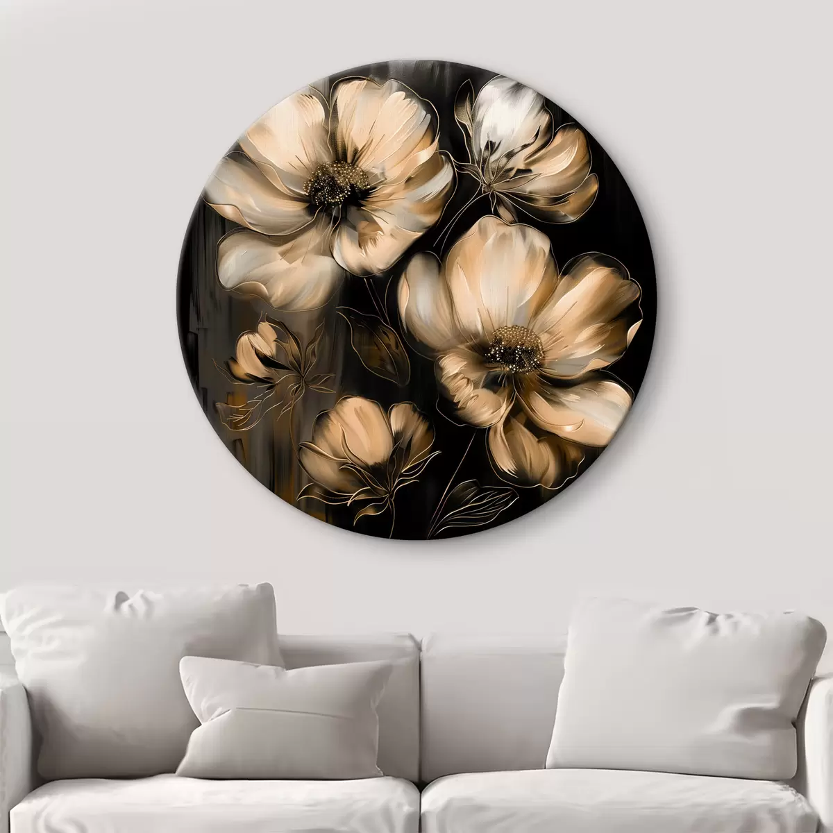 Ronde schilderijen Bloemen op zwarte achtergrond Nr r39446