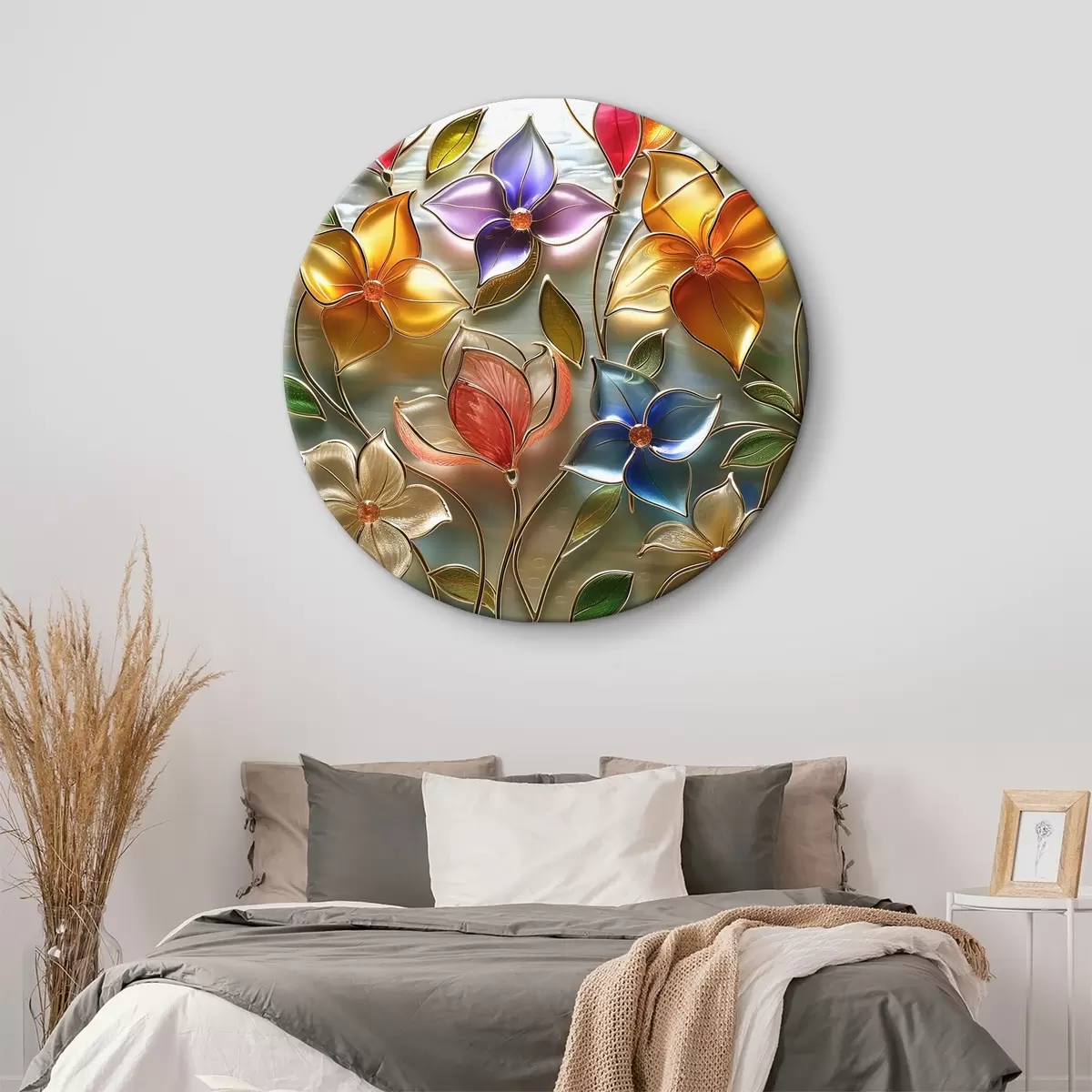 Ronde schilderijen Gebrandschilderde orchideeën gloeien in de zon Nr r39447