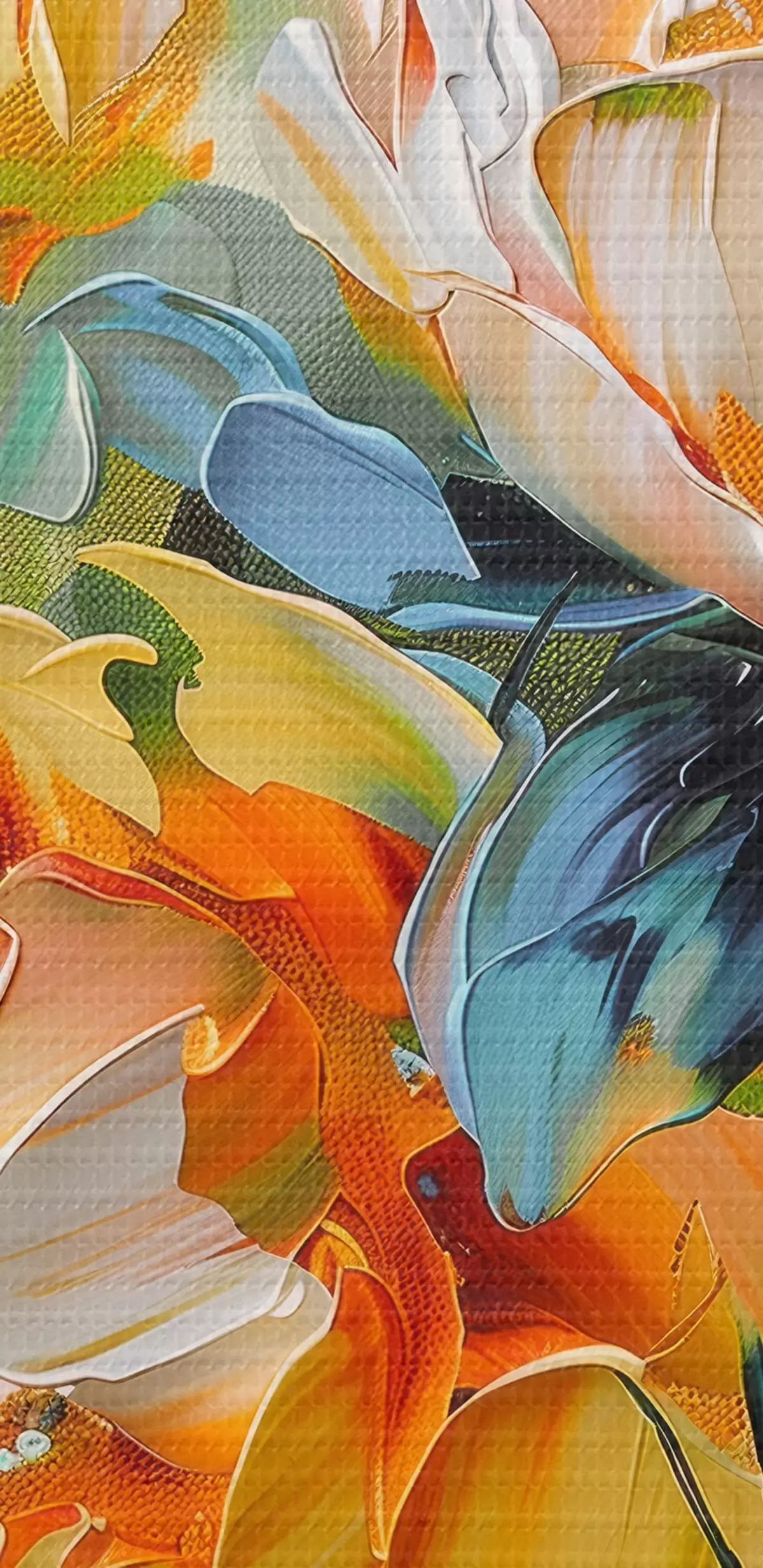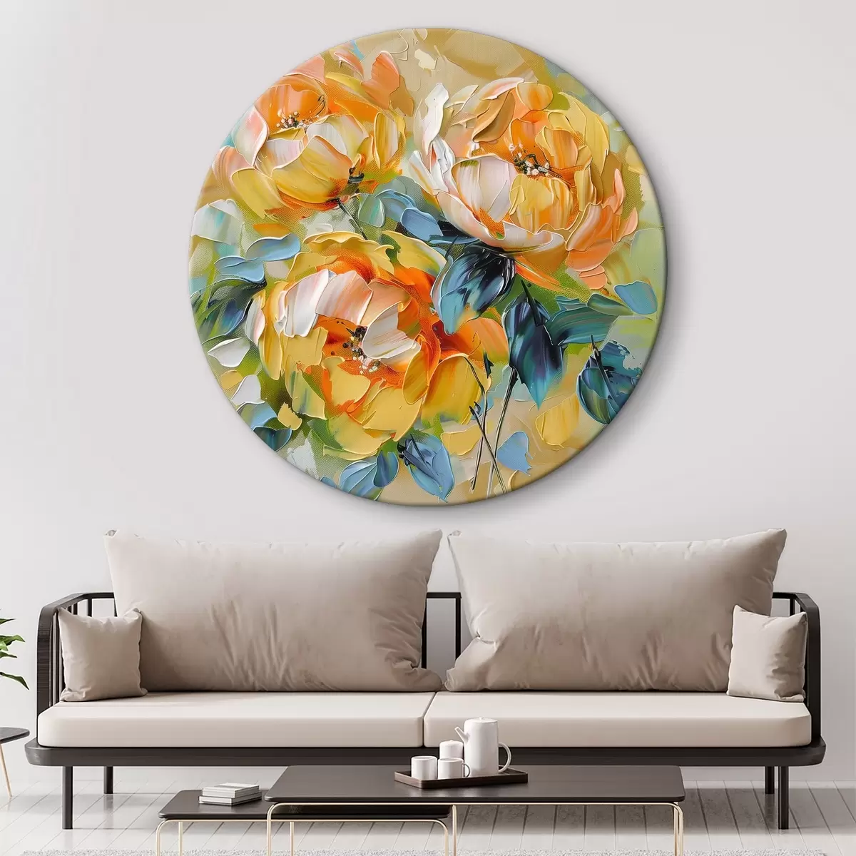 Ronde schilderijen Levendige bloemen met rijke texturen in een kleurrijke abstracte compositie Nr r39460