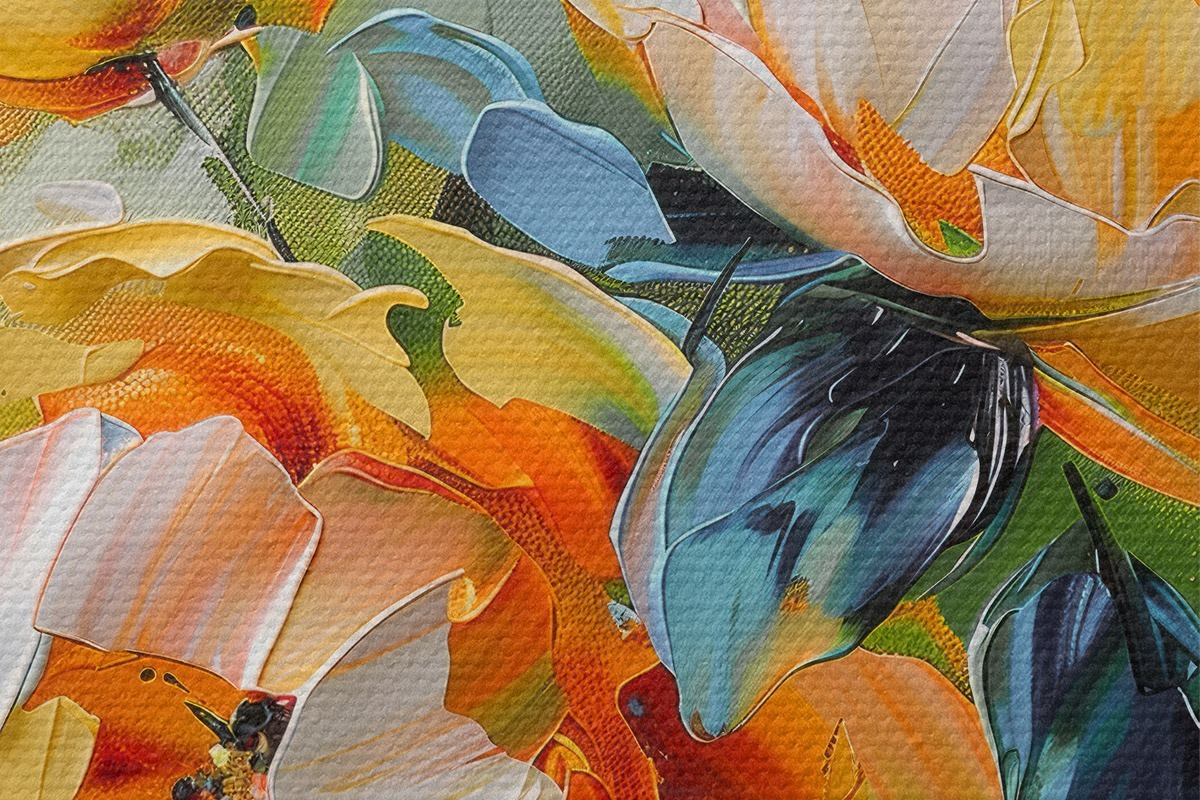Er zijn drie soorten materiaal te bestellen: Economic Canvas - een dicht en duurzaam materiaal voor digitaal printen, identiek aan schildersdoek, waterdicht oppervlak, realistische weergave van details, materiaal met gemiddelde korrel. Premium Canvas - de textuur lijkt op die van schildersdoek (verweven kleine draden). Zachte, gedetailleerde reproductie van de afbeelding op een mat oppervlak. Eco-Premium - hoogwaardige 100% katoenen stof. Dankzij de natuurlijke katoenvezels is het materiaal duurzaam en slijtvast. Uitstekende kleurweergave en detail.