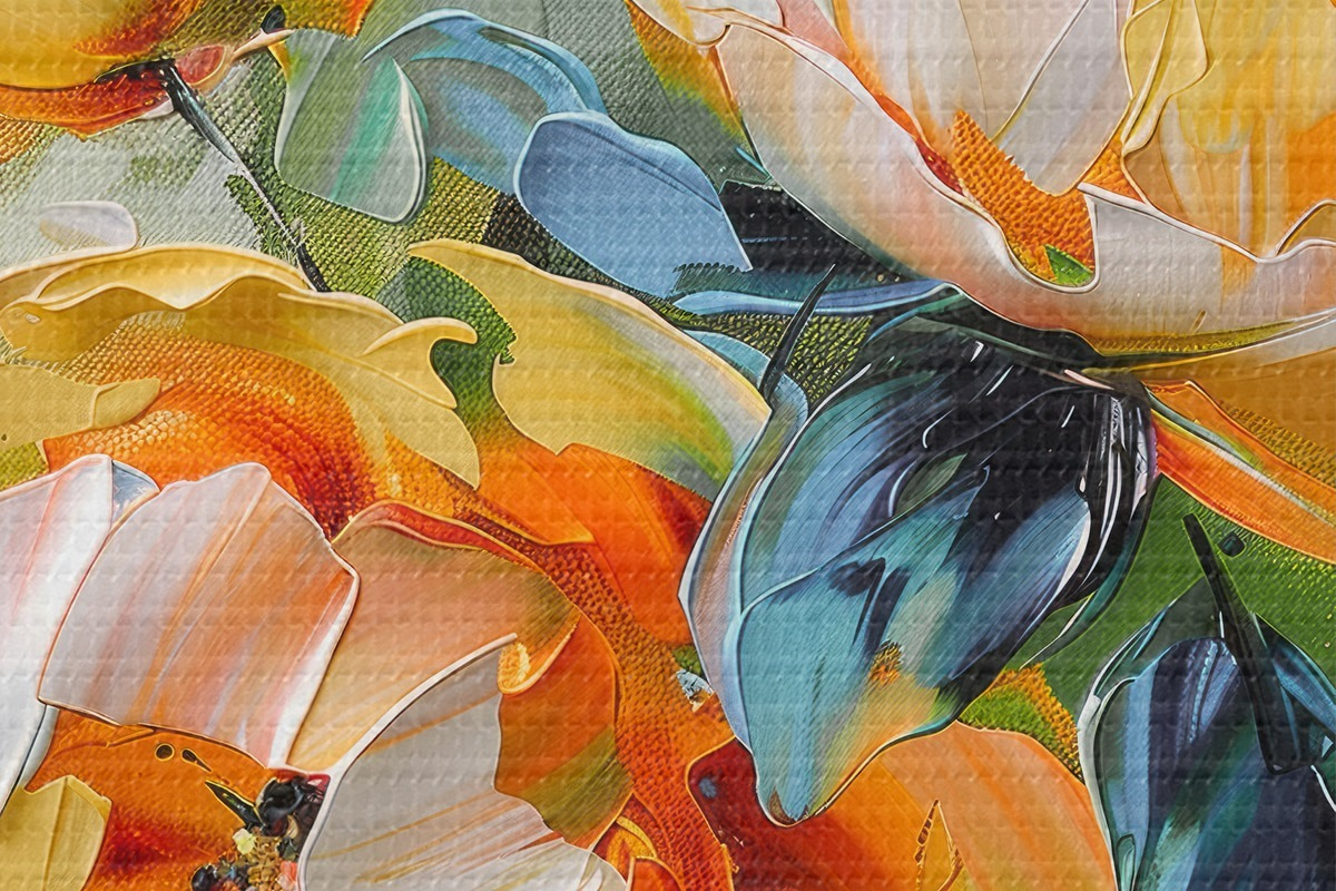 Ronde schilderijen Levendige bloemen met rijke texturen in een kleurrijke abstracte compositie r39460