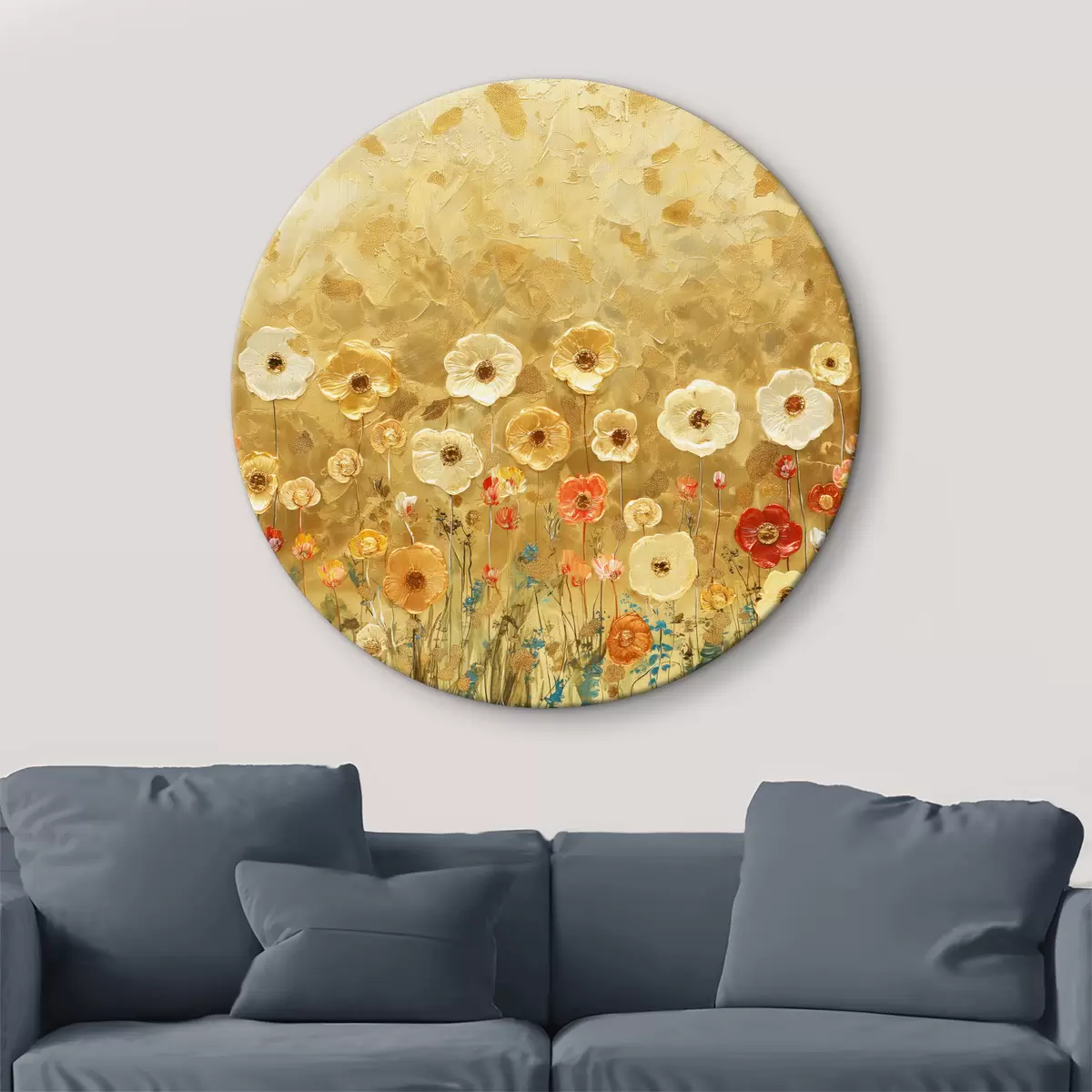 Ronde schilderijen klimt-stijl weide: delicate pastelbloemen met gesmolten textuur Nr r39464