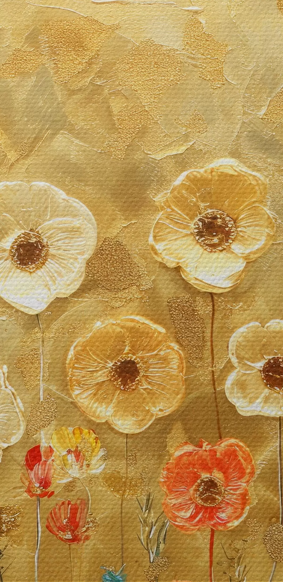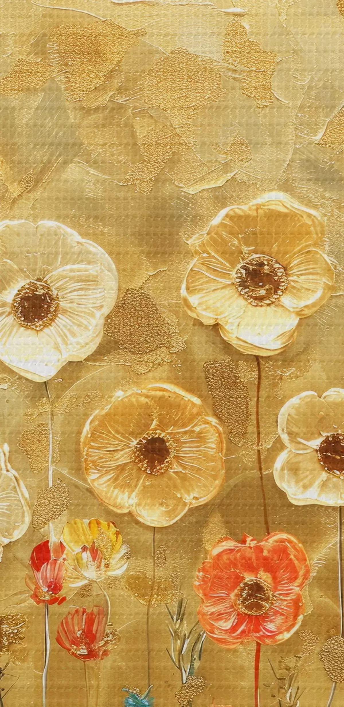 Ronde schilderijen klimt-stijl weide: delicate pastelbloemen met gesmolten textuur r39464