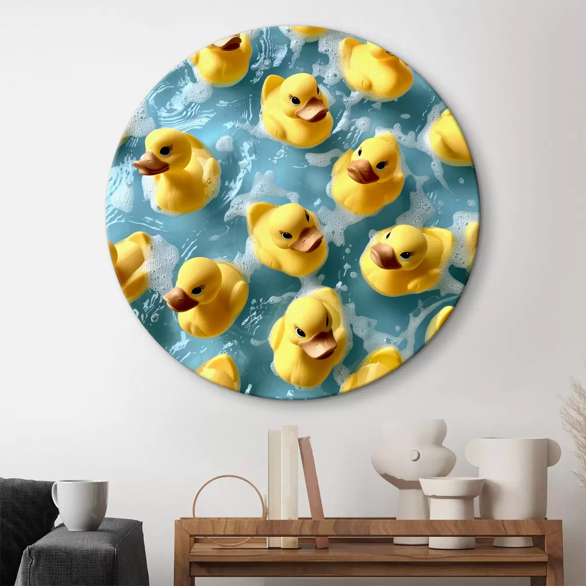 Ronde schilderijen Realistische badeendjes die in het water drijven Nr r39469