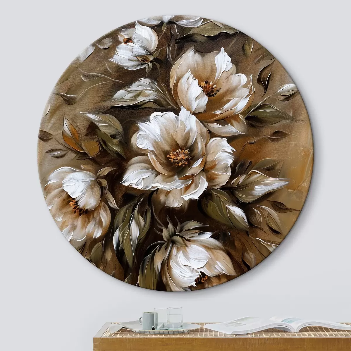 Ronde schilderijen Bloemen met bladeren in bruintinten r39487