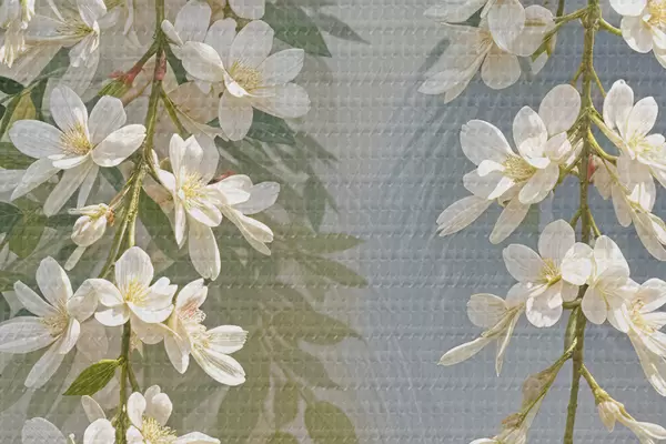 Ronde schilderijen Hangende witte blauweregenbloemen met groene bladeren tegen een onscherpe achtergrond Nr r39530