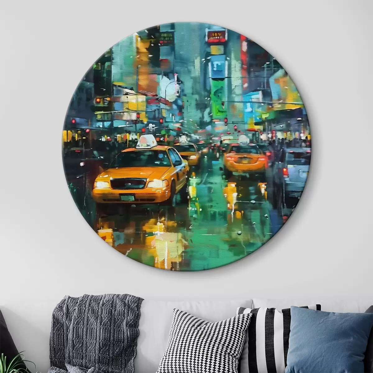 Ronde schilderijen New York en taxi Nr r39534