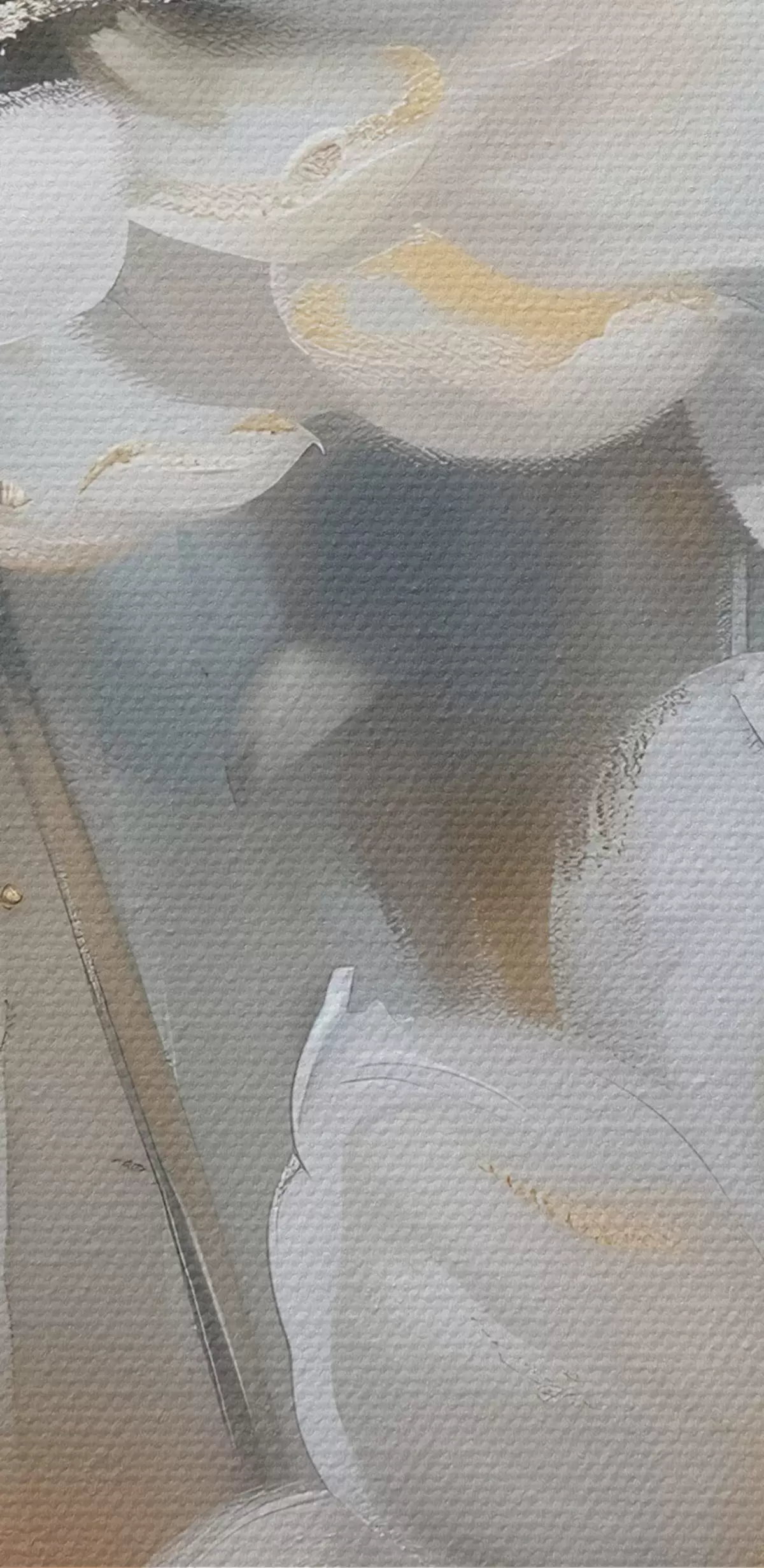 Het schilderij kan direct na ontvangst worden opgehangen. Het schilderij wordt opgespannen op een 2 cm breed houten spieraam.