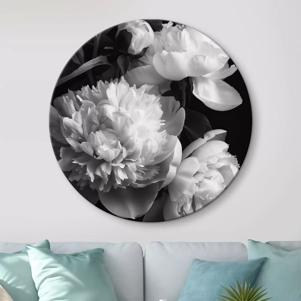 Ronde schilderijen Zwart-witte pioenrozen r39547