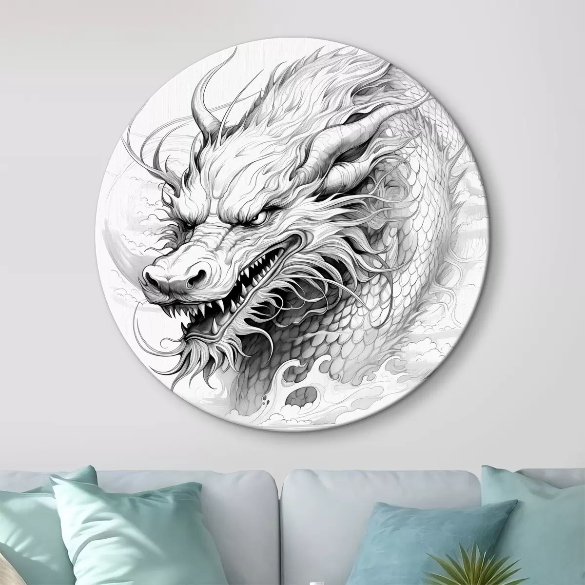 Ronde schilderijen Chinese stijl draak lijntekening monochroom Nr r39563