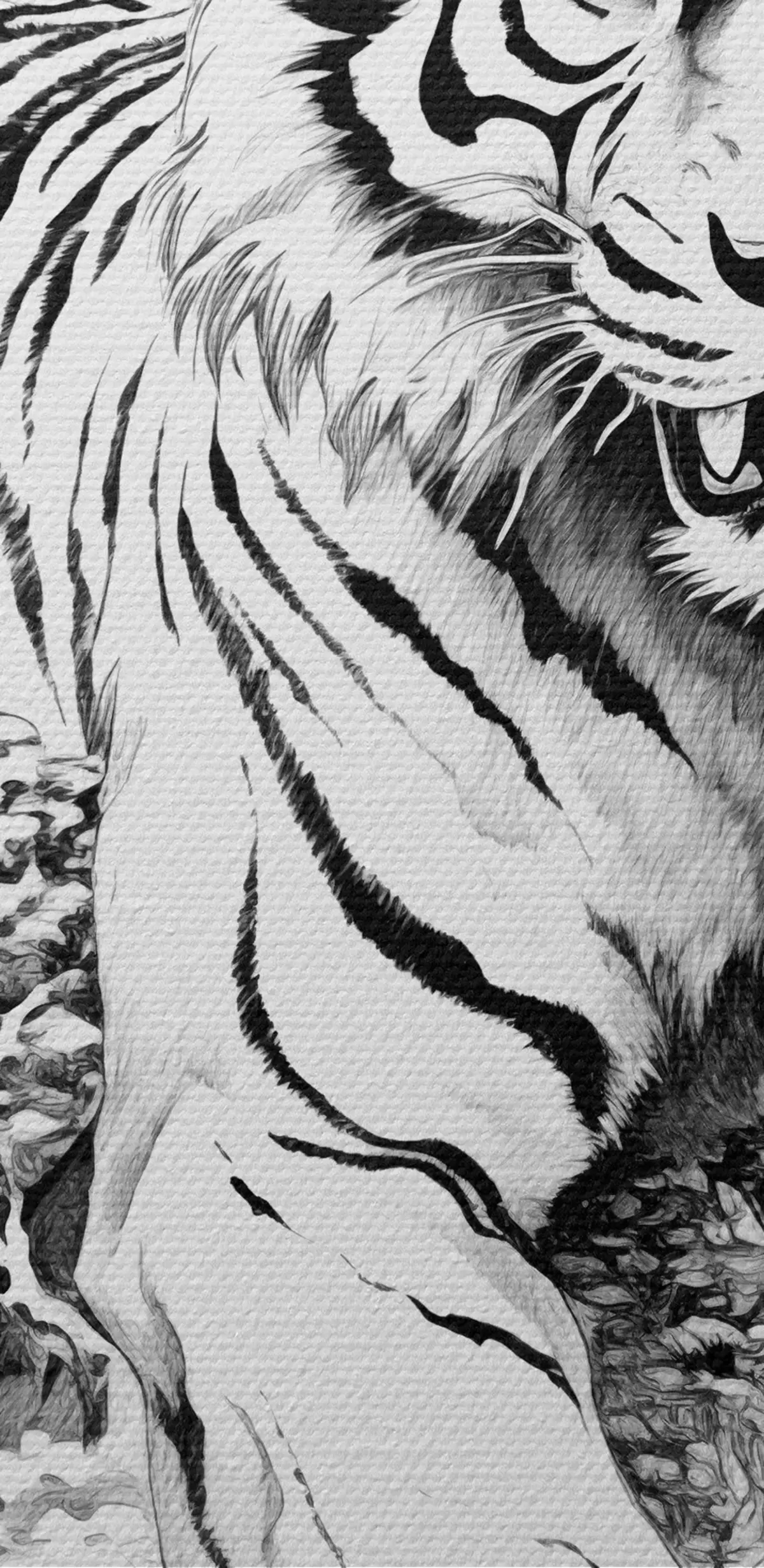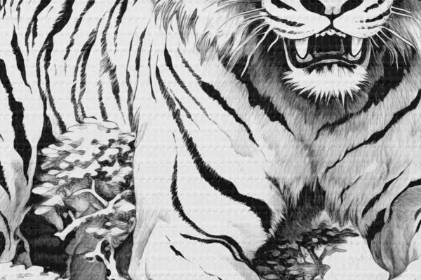 Ronde schilderijen Tijger monochroom patroon in oosterse stijl Nr r39565