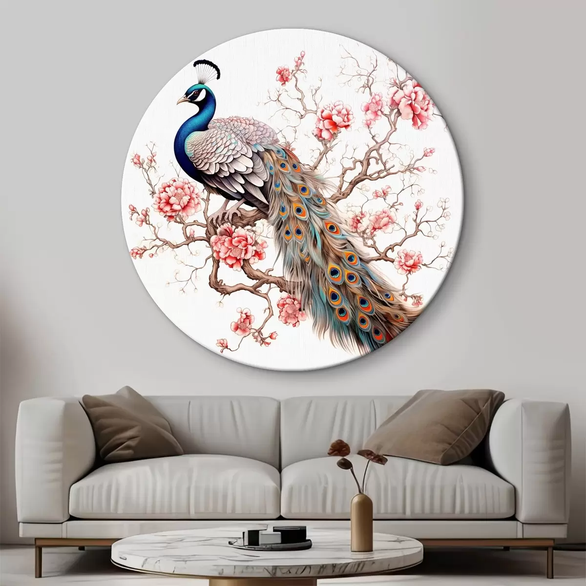 Ronde schilderijen Pauw zittend op een sakura tak aquarel r39568