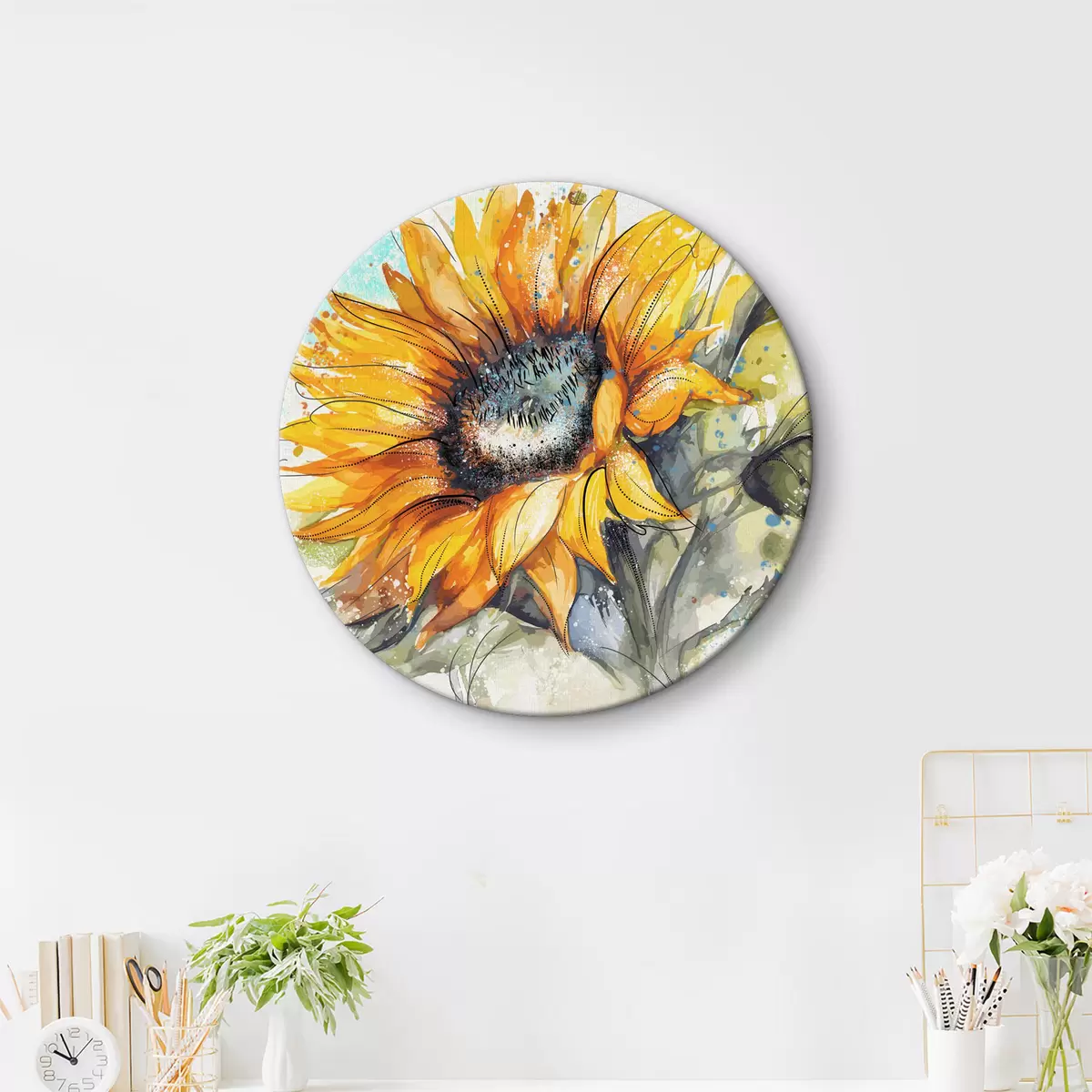 Ronde schilderijen Aquarel zonnebloem met verfspatten r39583
