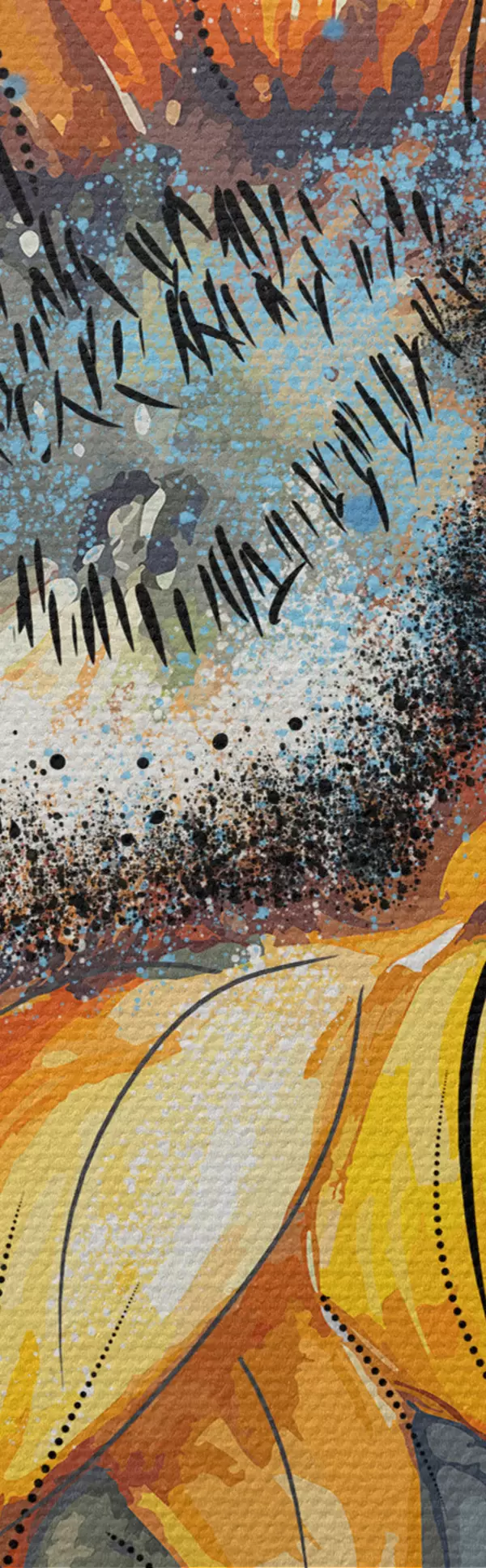 Het schilderij kan direct na ontvangst worden opgehangen. Het schilderij wordt opgespannen op een 2 cm breed houten spieraam.