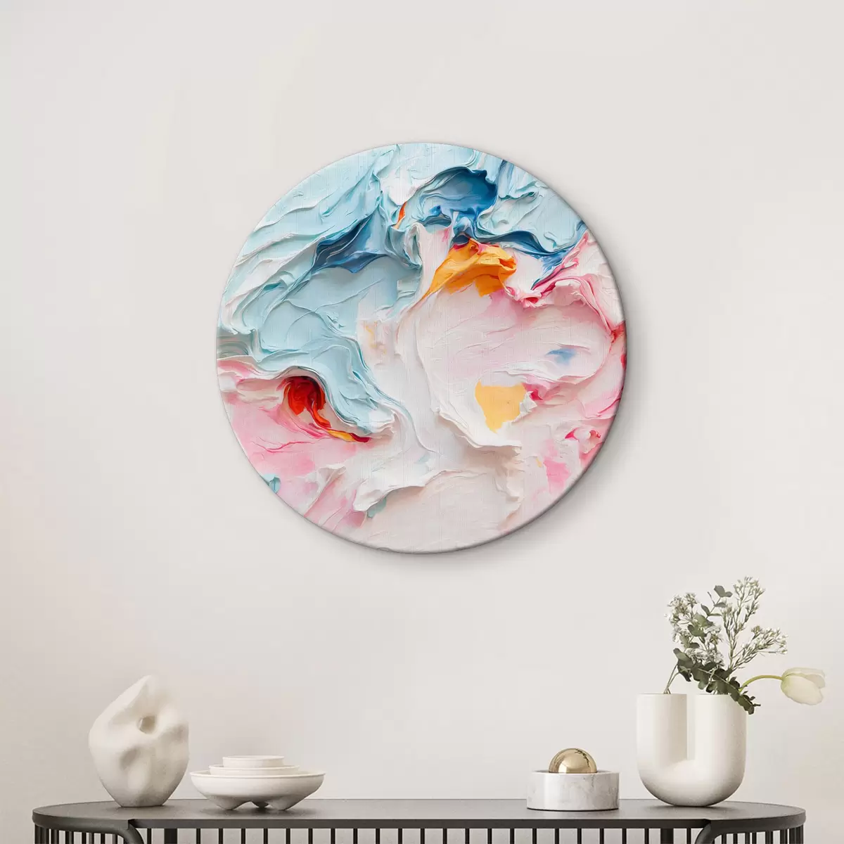Ronde schilderijen Abstractie met roze en blauwe oliekleuren Nr r39592