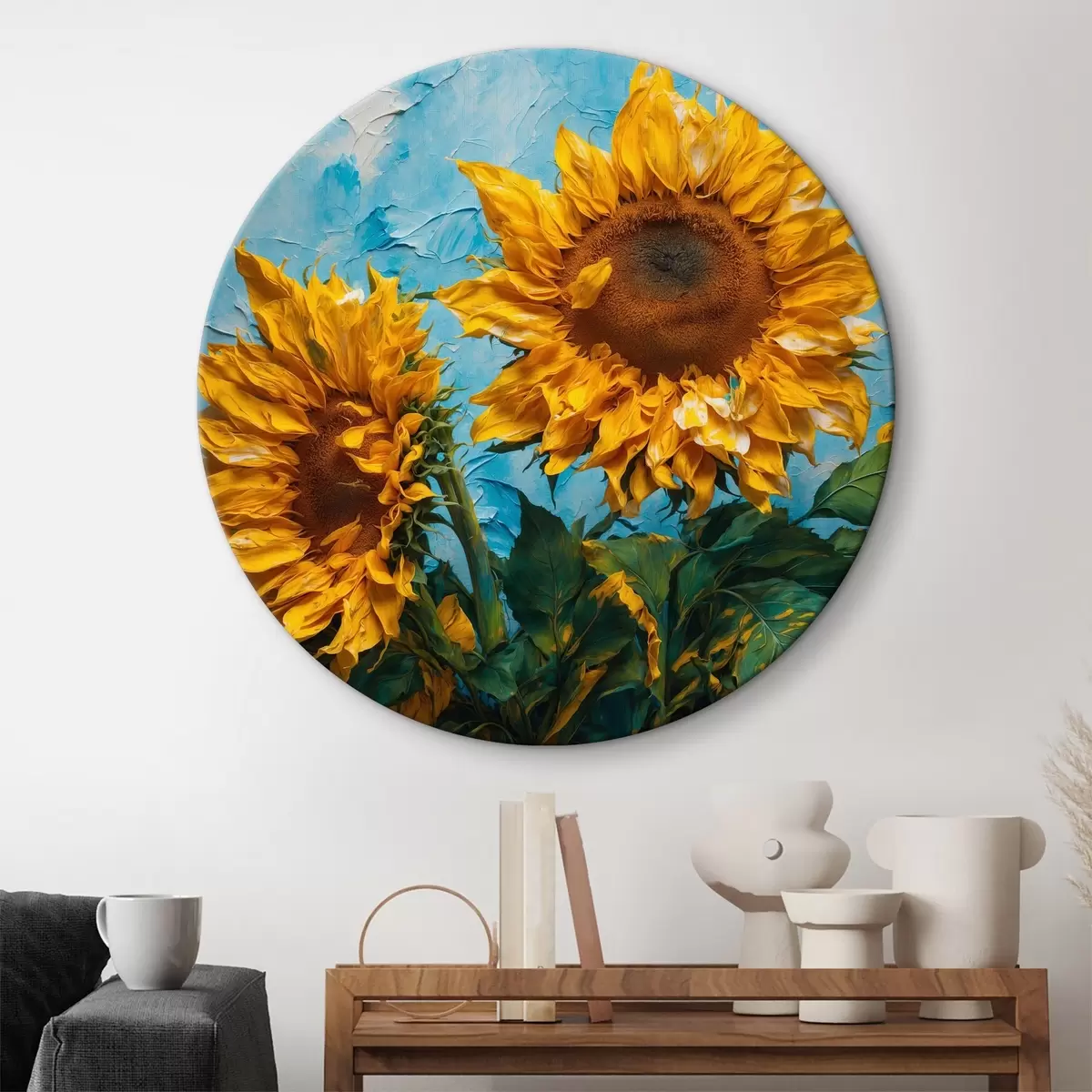 Ronde schilderijen Zonnebloemen op een vette achtergrond Nr r39594