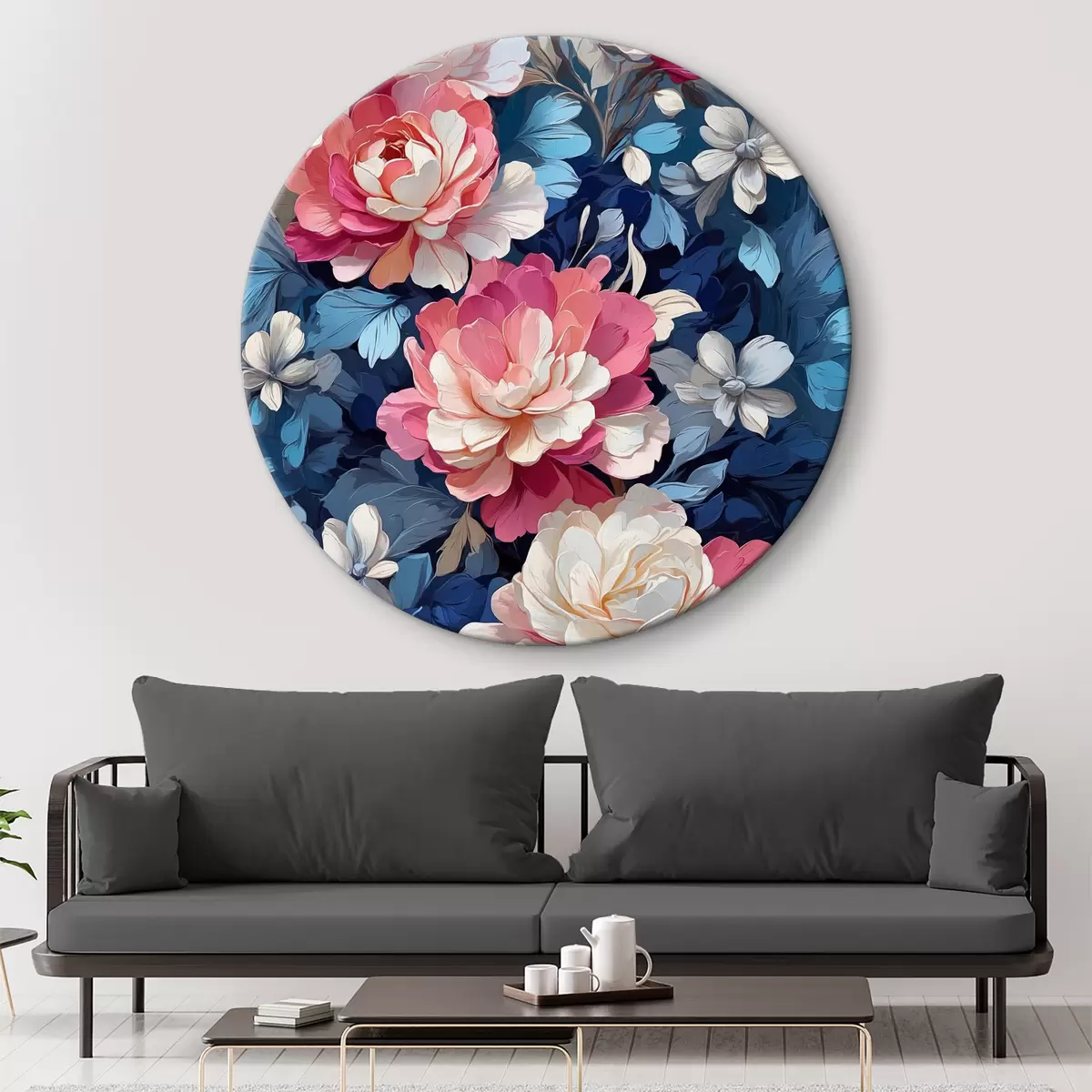 Ronde schilderijen Roze, witte en blauwe bloemen Nr r39599
